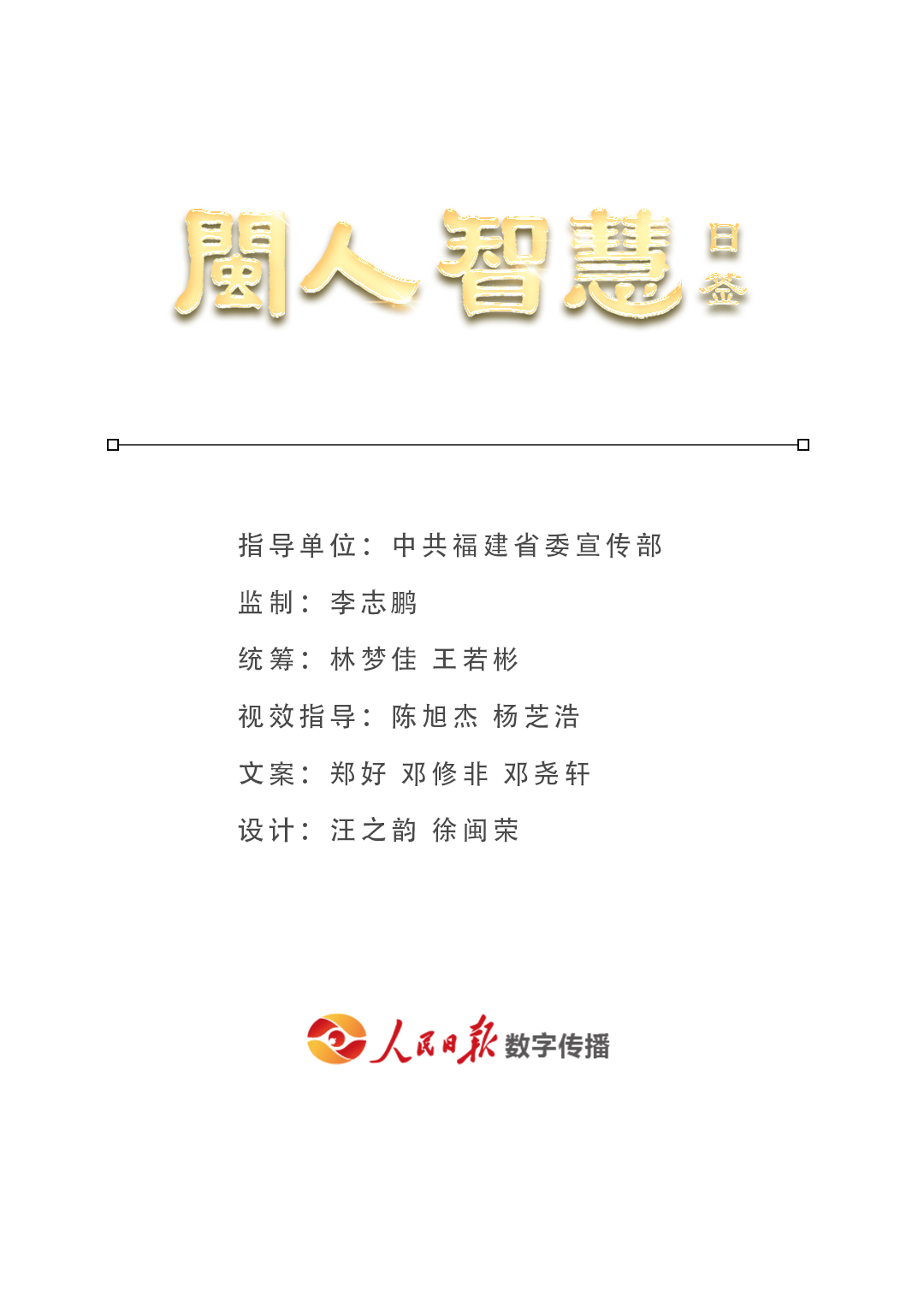 千百年来,福建这片土地上的人民在历史长河中寻觅和践行发展之“道”,形成了闪光的思想、革命的贡献、先进的发明、精湛的技艺、非凡的创造。这些,是我们今天称之为“闽人智慧”的宝贵财富。2022年9月1日,人民日报数字传播与福建省委宣传部联合推出《闽人智慧日签》栏目,一日一期,期期精心,全方位展现“你不知道的福建”。