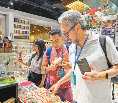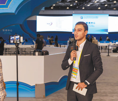 9月3日,参与2024年中非合作论坛北京峰会报道工作的记者在隆福寺文创园采访。 |