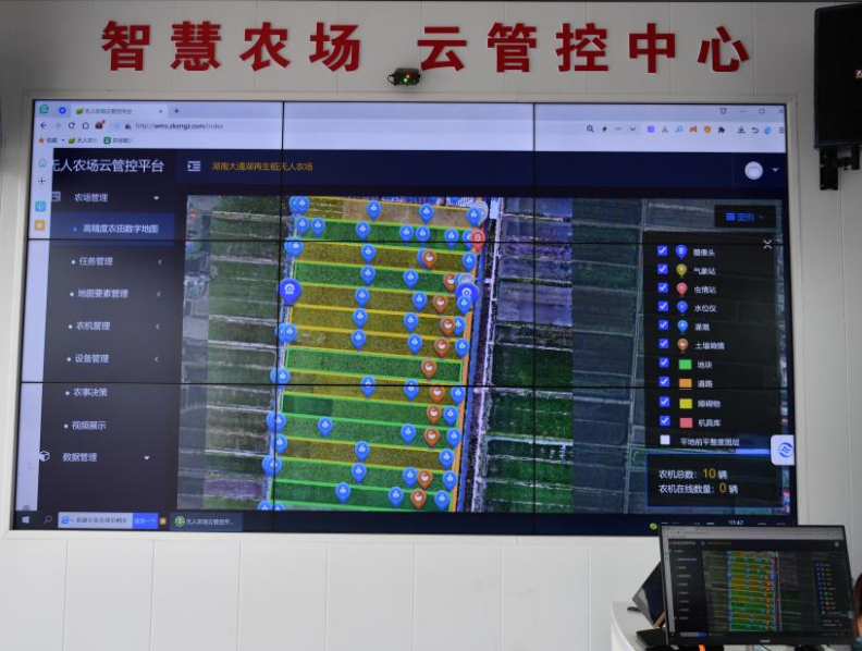 无人农场的“大脑”——云管控中心,从这里发出的指令,可以控制无人设备前往特定田块进行作业