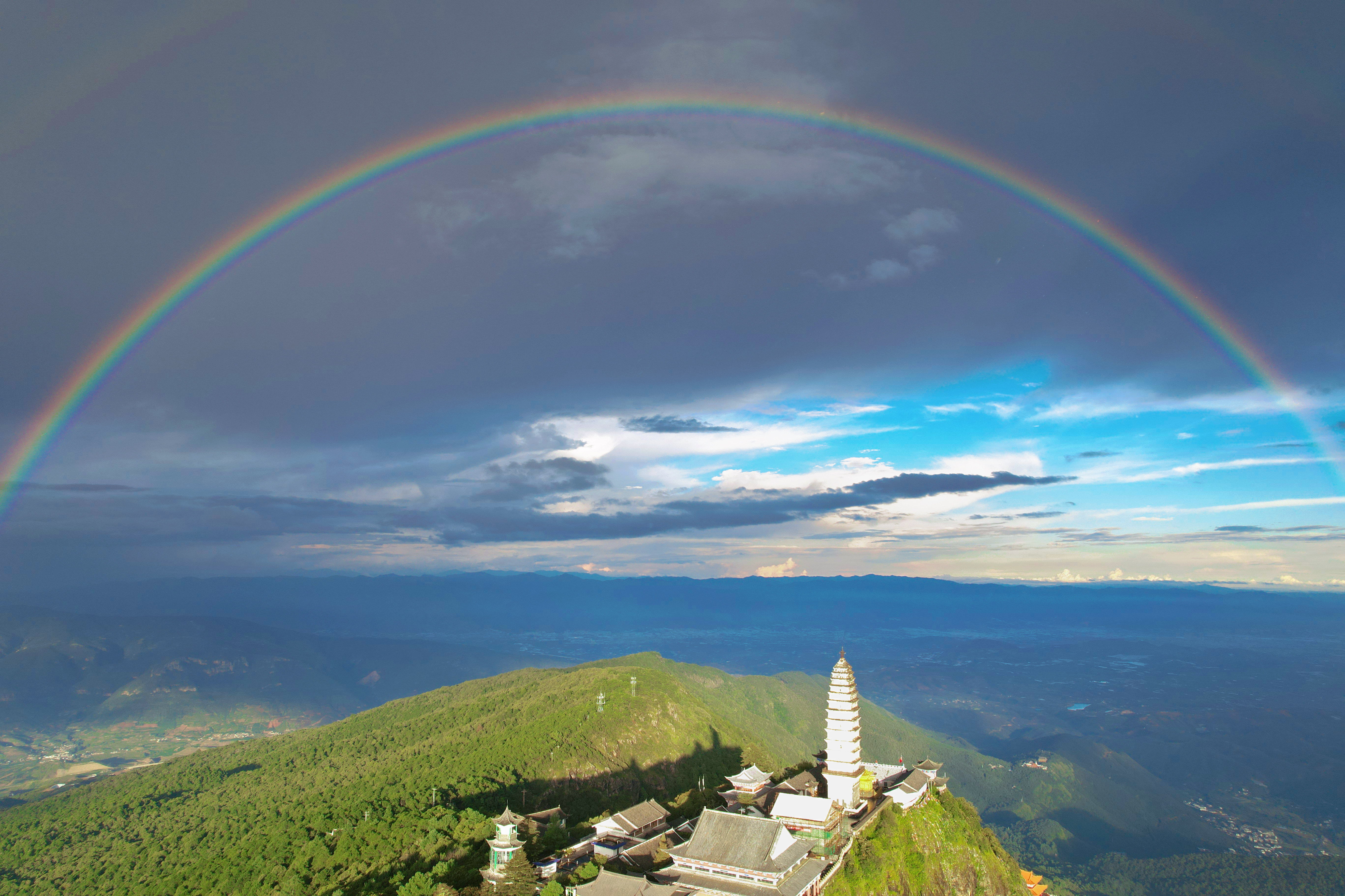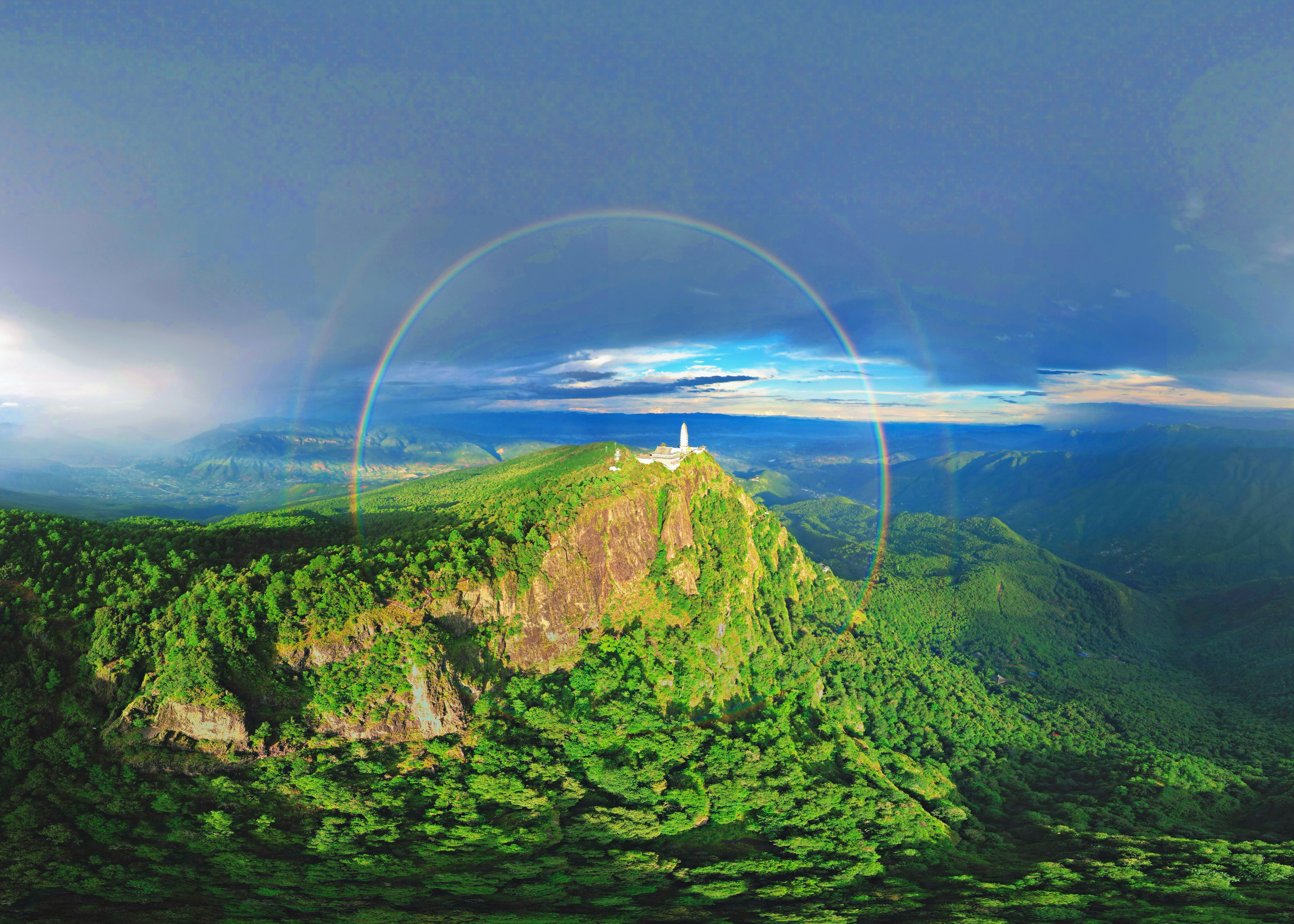 圆环双彩虹飞跨大理鸡足山