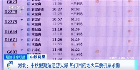 河北某旅行社销售经理 张博:从目前情况来看,一些热门目的地,比如郑州、太原、秦皇岛的火车票好多都已经售罄了;机票方面也是,例如从石家庄出发去往大连、桂林、上海的机票非常紧俏。