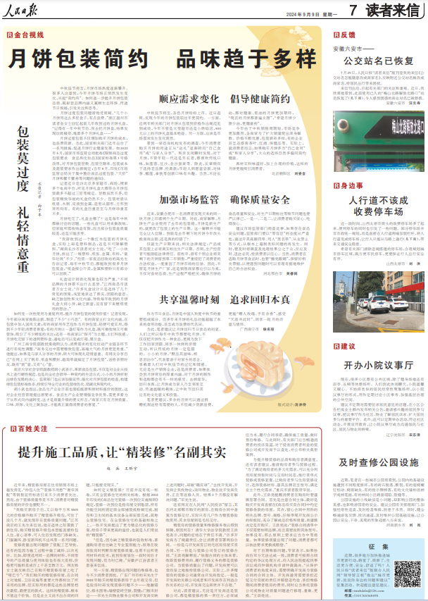 月饼过度包装不仅增加购买月饼的成本,也浪费资源。为此,国家相关部门近年出台了一系列措施,促进月饼行业健康发展。如2022年5月,国家市场监管总局批准《限制商品过度包装要求 食品和化妆品》国家标准第1号修改单,对月饼包装层数、包装空隙率、包装成本及混装要求作出新规定;当年8月,印发《市场监管总局关于集中整治商品过度包装、“天价”月饼和蟹卡蟹券等问题的通知》。