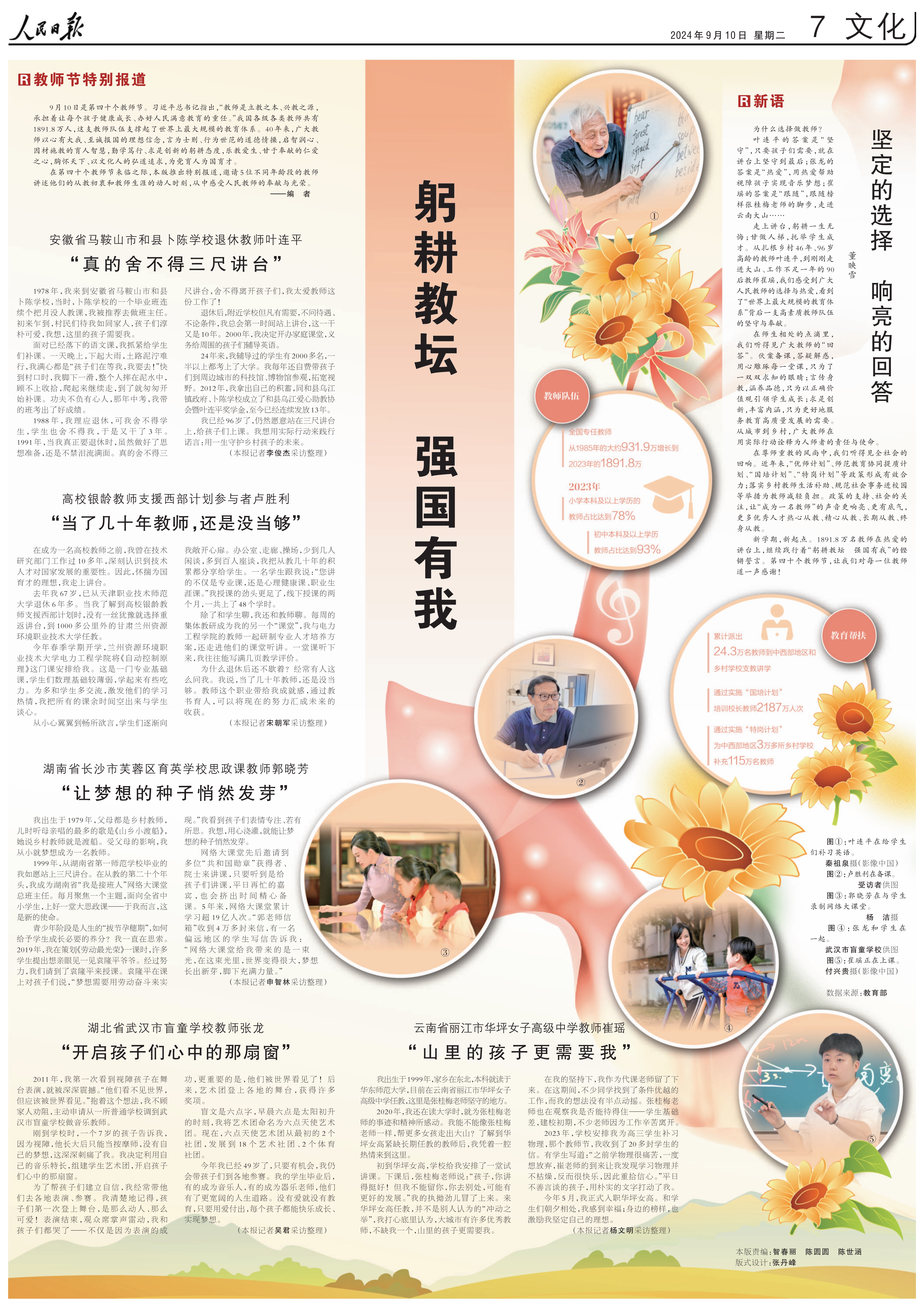 在第四十个教师节来临之际,本版推出特别报道,邀请5位不同年龄段的教师讲述他们的从教初衷和教师生涯的动人时刻,从中感受人民教师的奉献与光荣。