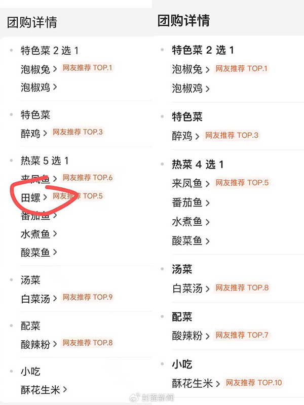 谈及具体的违规行为,工作人员说,“该店在店内菜单上标注的是‘香辣螺’,但在美团团购详情中却标示为‘田螺’,实际上店铺同时销售田螺和福寿螺,这种行为涉嫌侵害消费者的知情权。”