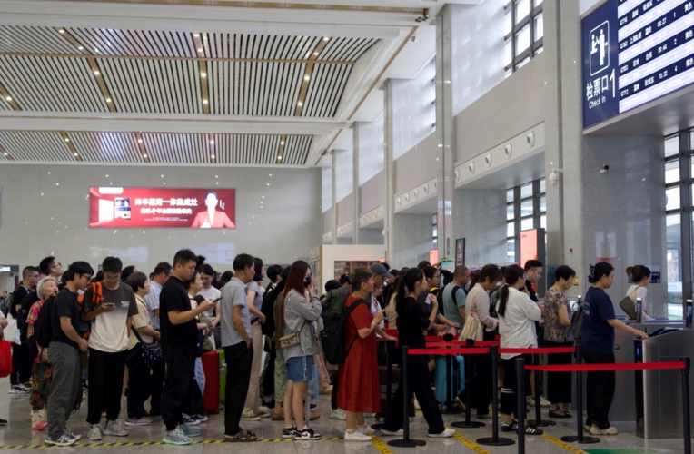 杭台高铁嵊州新昌站内,旅客有序检票乘车