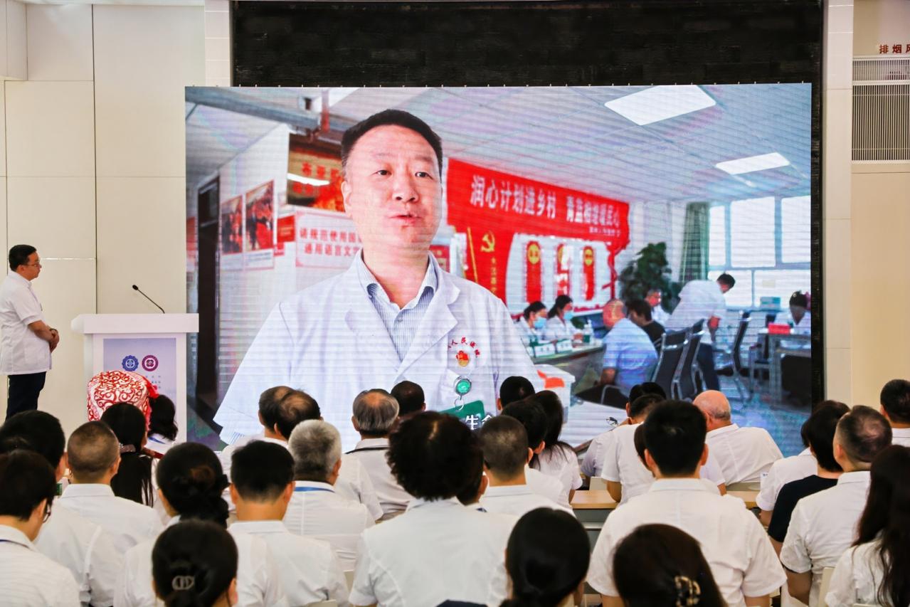 德国哲学家雅斯贝尔斯在其著作《什么是教育》中提到,“教育的本质是一棵树摇动另一棵树,一朵云推动另一朵云,一个灵魂唤醒另一个灵魂。”教师节活动现场,江苏省人民医院张石江教授、邵永丰教授及克州人民医院卡德尔江·木沙副院长从“师徒”角度讲述了“医心传承”的故事。