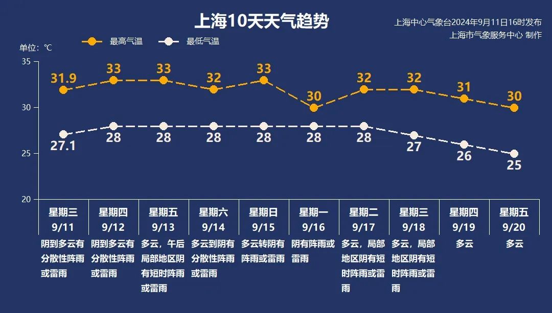 明天至周六(14日),上海处在副热带高压边缘,偏东气流持续输送,大气中水汽含量高,天气是和今天相似的配方,云多有阳光,偶尔有些短时阵雨,气温保持在28~33℃之间。15~16日有风雨影响,气温也有下降。由于“贝碧嘉”的路径和强度还在不断发生变化,申城和华东地区后期天气调整会比较大,我们将密切关注,也请大家及时留意最新的预报信息。