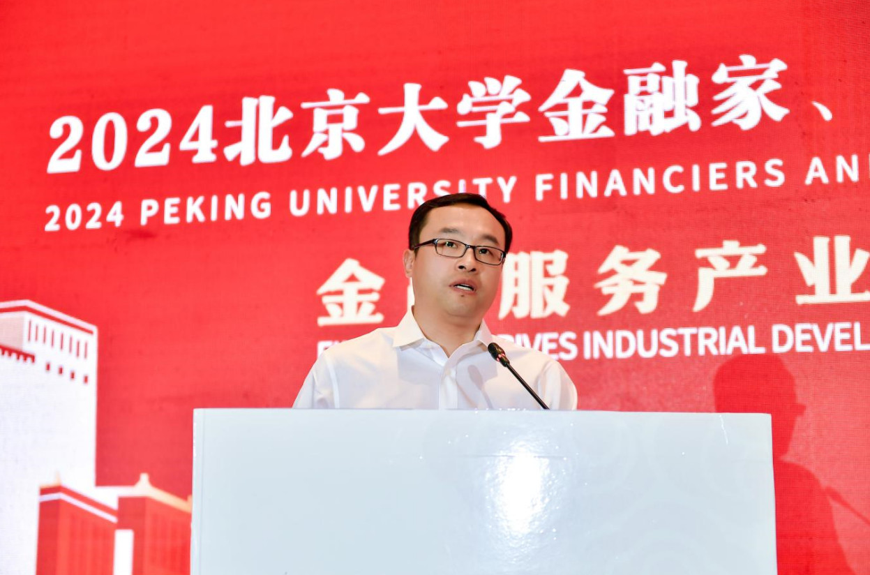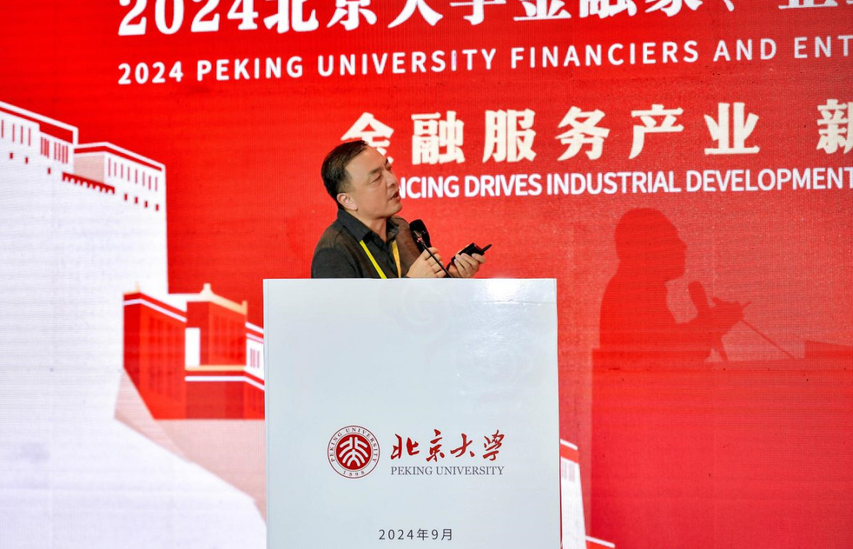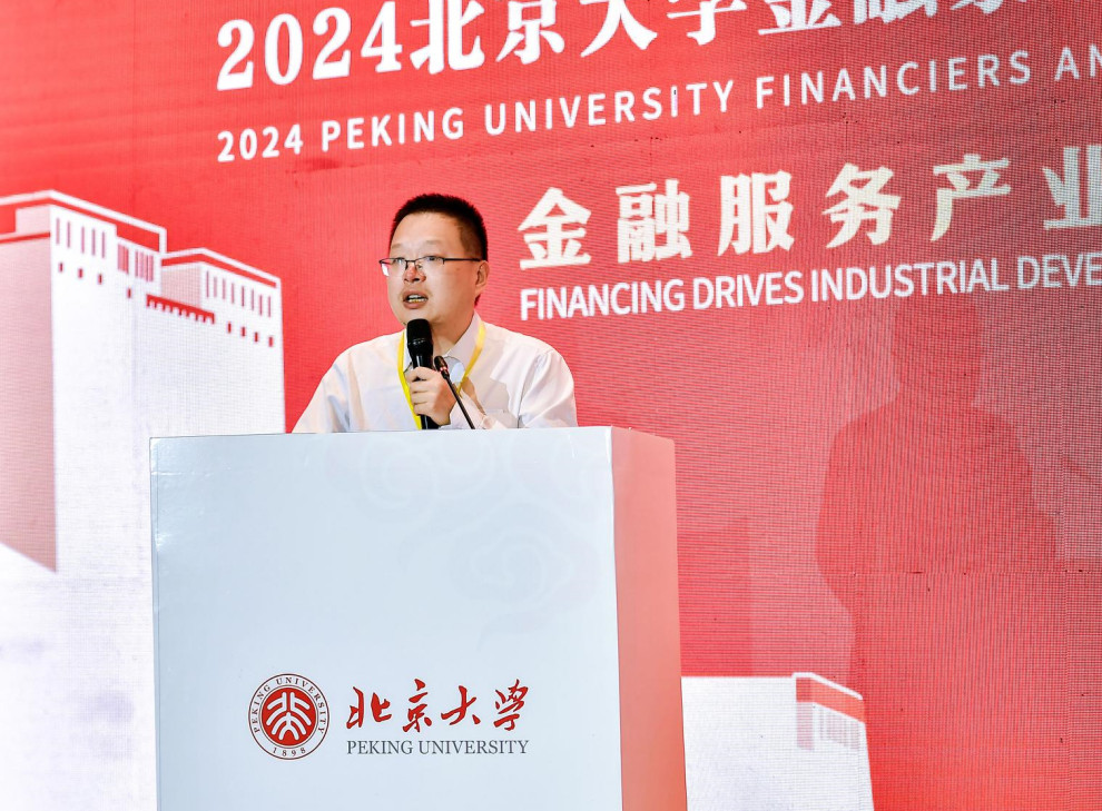 北京大学校务委员会副主任、北京大学汇丰商学院创院院长、北京大学金融校友联合会创会会长海闻演讲