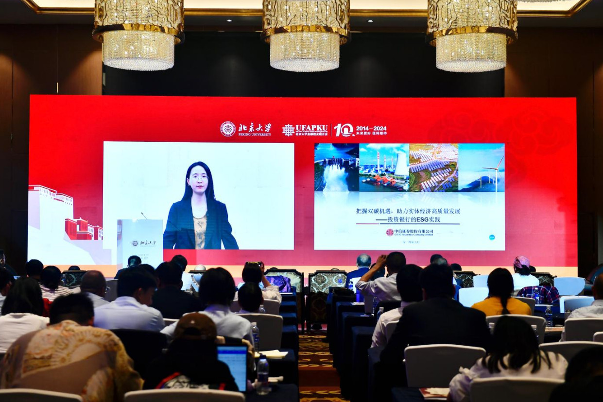 本次活动主题演讲环节分为三个专题。专题一邀请到五位嘉宾与到场来宾就“金融服务产业 新质引领未来”进行专题分享。北京大学校务委员会副主任、北京大学汇丰商学院创院院长、北京大学金融校友联合会创会会长海闻带来“世界变局下的中国经济”主题演讲;国投证券首席经济学家、北京大学金融校友联合会会长高善文通过视频形式参与分享了“当前宏观经济的几个重要问题——经济转型与消费乏力”;中金公司首席策略师、研究部执行负责人,北京大学国家发展研究院兼职教授缪延亮与观众畅谈“创新和金融”;摩根士丹利中国首席经济学家、北京大学金融校友联合会副会长邢自强通过视频形式分享了对“新质生产力与中国经济”的看法;北京大学能源研究院研究员、北京大学鄂尔多斯能源研究院首席科学家杨玉峰带来了“形势与展望—聚焦‘碳达峰、碳中和’和‘绿色低碳转型发展’”主题分享。