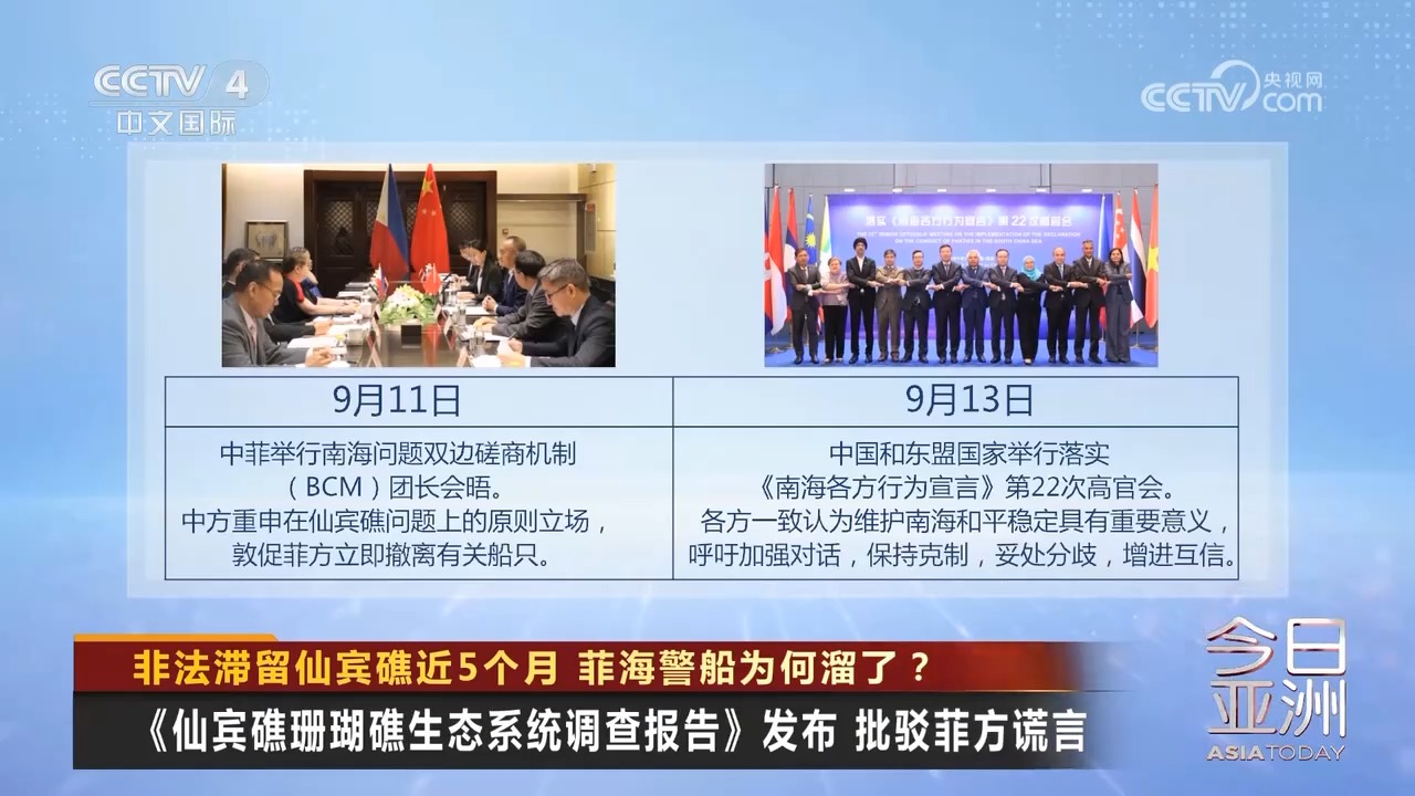 9月11日,中菲举行南海问题双边磋商机制(BCM)团长会晤。中方重申在仙宾礁问题上的原则立场,敦促菲方立即撤离有关船只。
