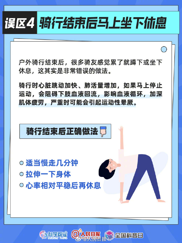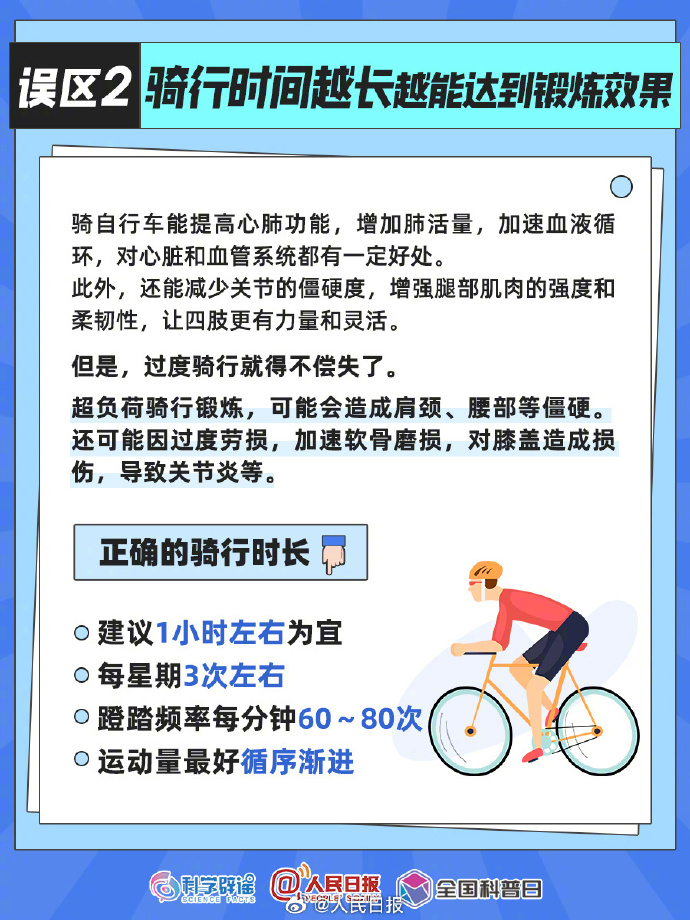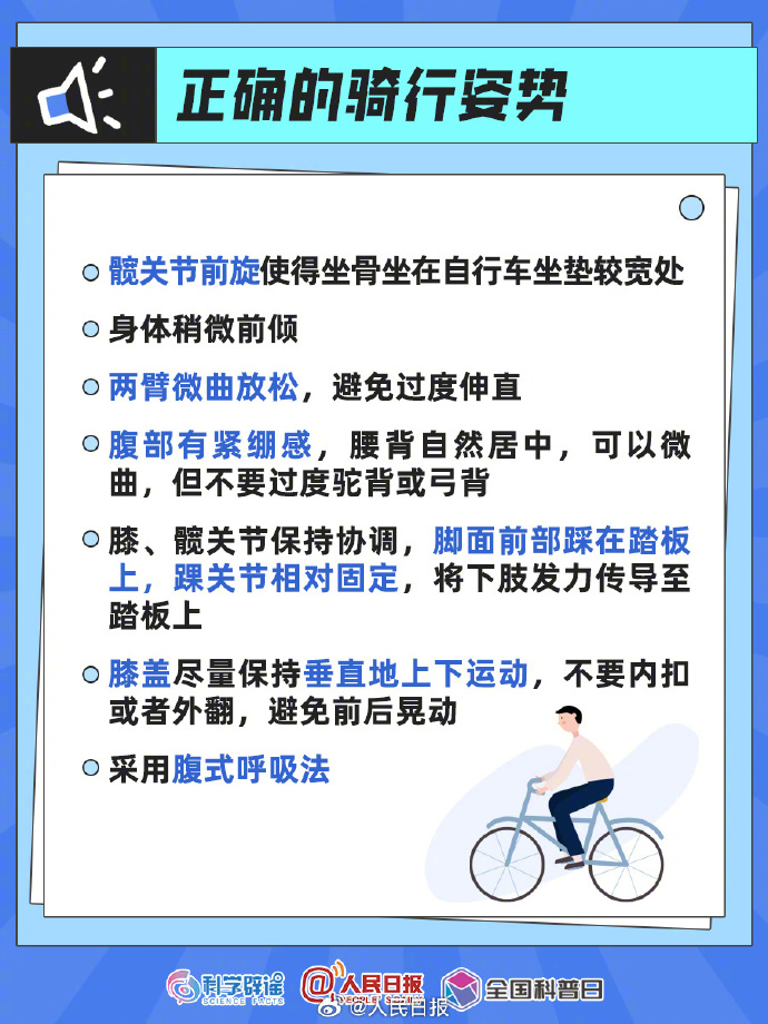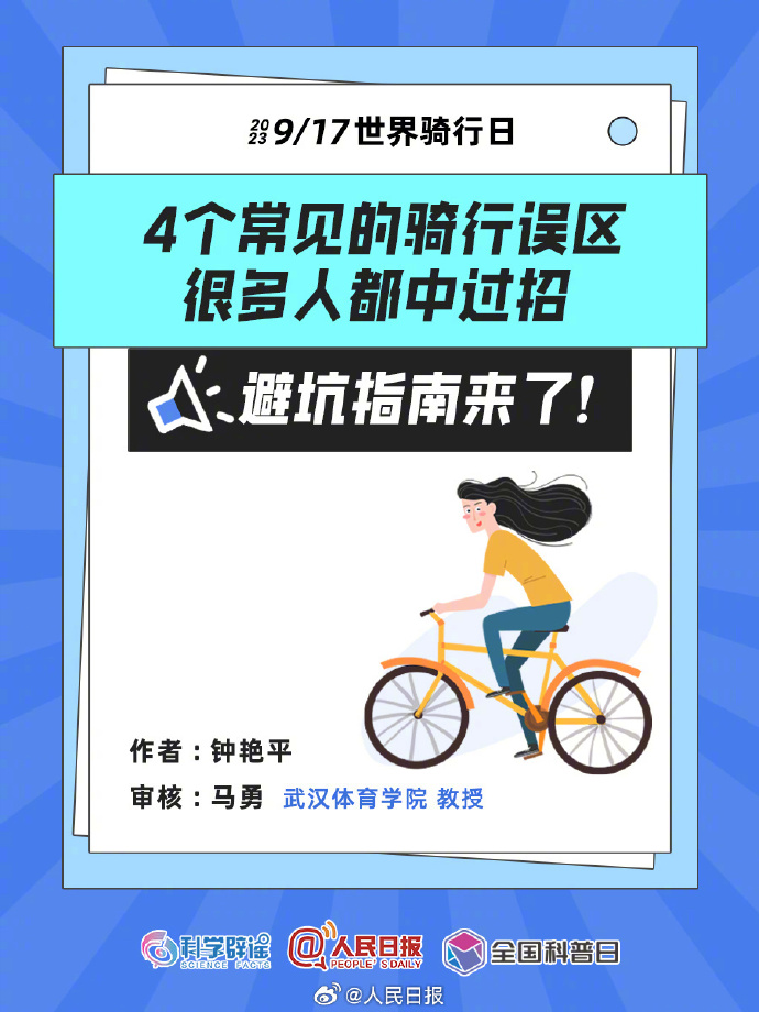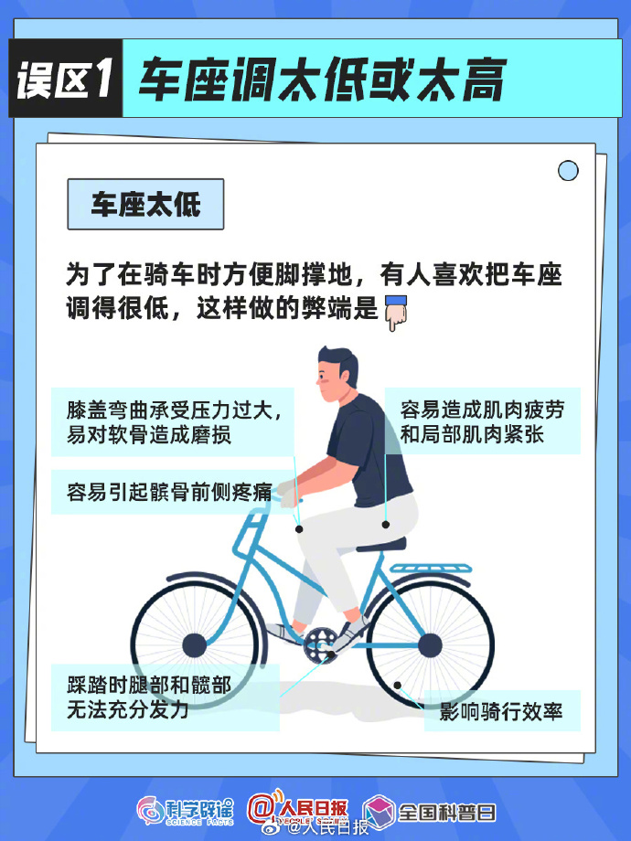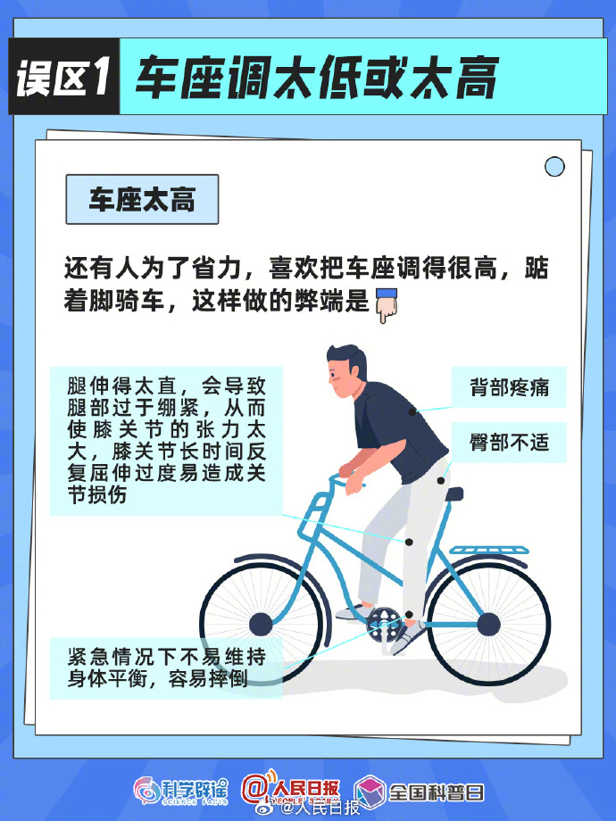 骑行被称为“黄金有氧运动”,既能锻炼身体,还能减压。车座调多高合适?骑行时间越长锻炼效果越好吗?这4个常见的骑行误区,很多人都中招了。正确的骑行姿势和蹬踏动作,戳图了解!今天世界骑行日,转给爱好骑行的TA。