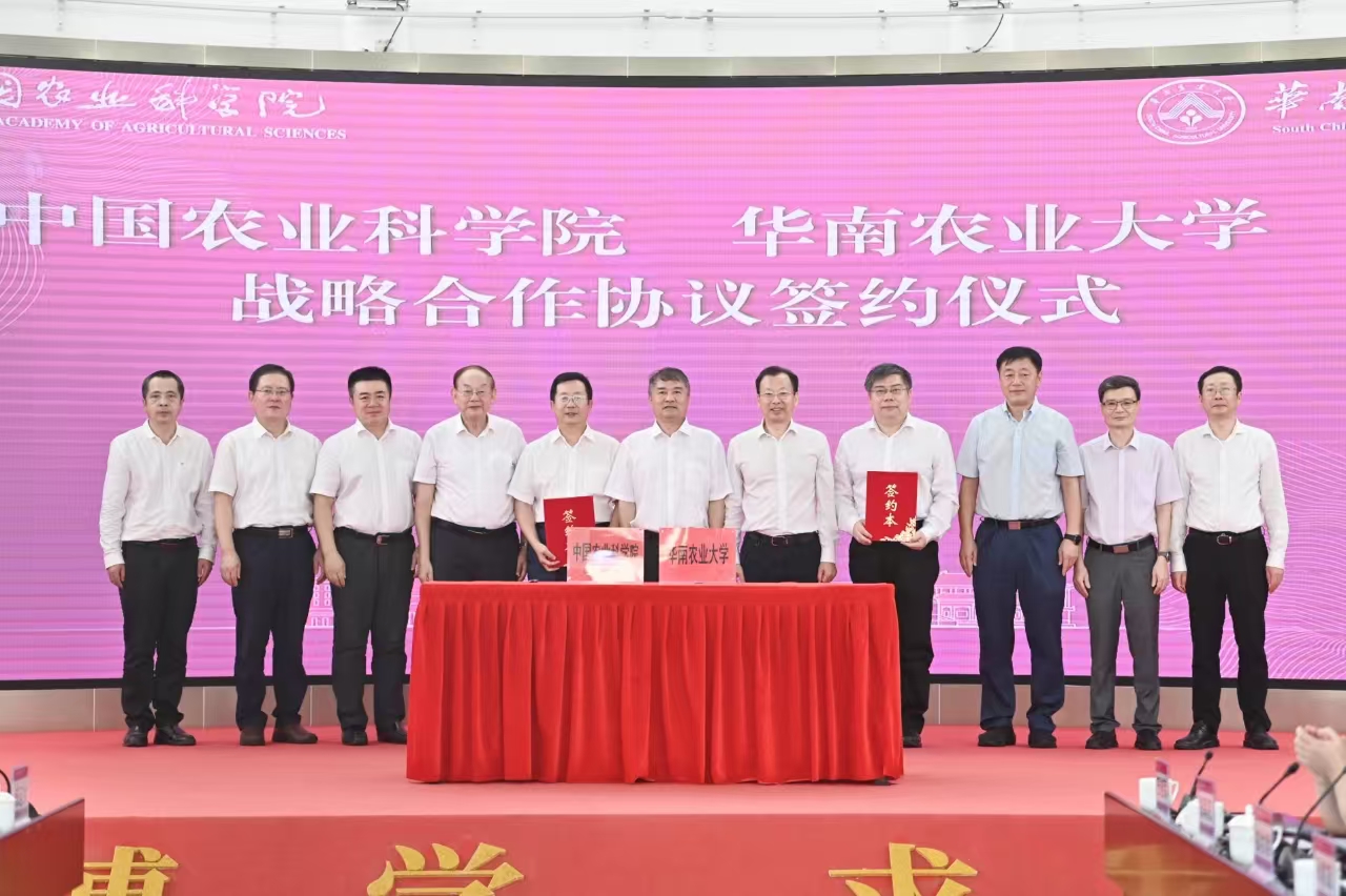 9月19日,华南农业大学与中国农业科学院正式签署战略合作协议。双方将围绕“大农业、大食物、大健康、大生态”发展方向,在科技协同创新、人才交流培养、科技成果转化、乡村振兴与社会服务等方面开展多层次战略合作,联合培育发展农业新质生产力,推进教育、科技、人才一体化高质量发展。