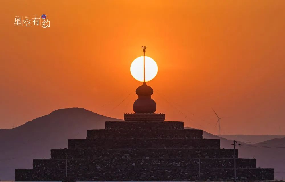 星空摄影师席强2023年9月23日在内蒙古乌兰察布隆盛庄镇拍摄的敖包落日“悬日”。(星联CSVA供图)