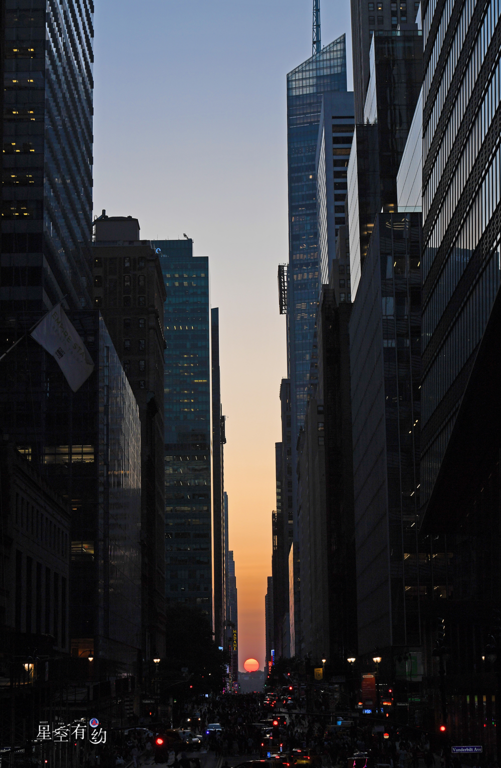 星联CSVA联合发起人蒋晨明表示,“悬日”并非曼哈顿独有,太阳升落的方位在一年内不断发生着变化,理论上来说,它可以在任何一个东西向(或略有斜度的偏东南-西北、偏东北-西南)街道,且街道尽头地平线视野不受阻碍的城市中出现。