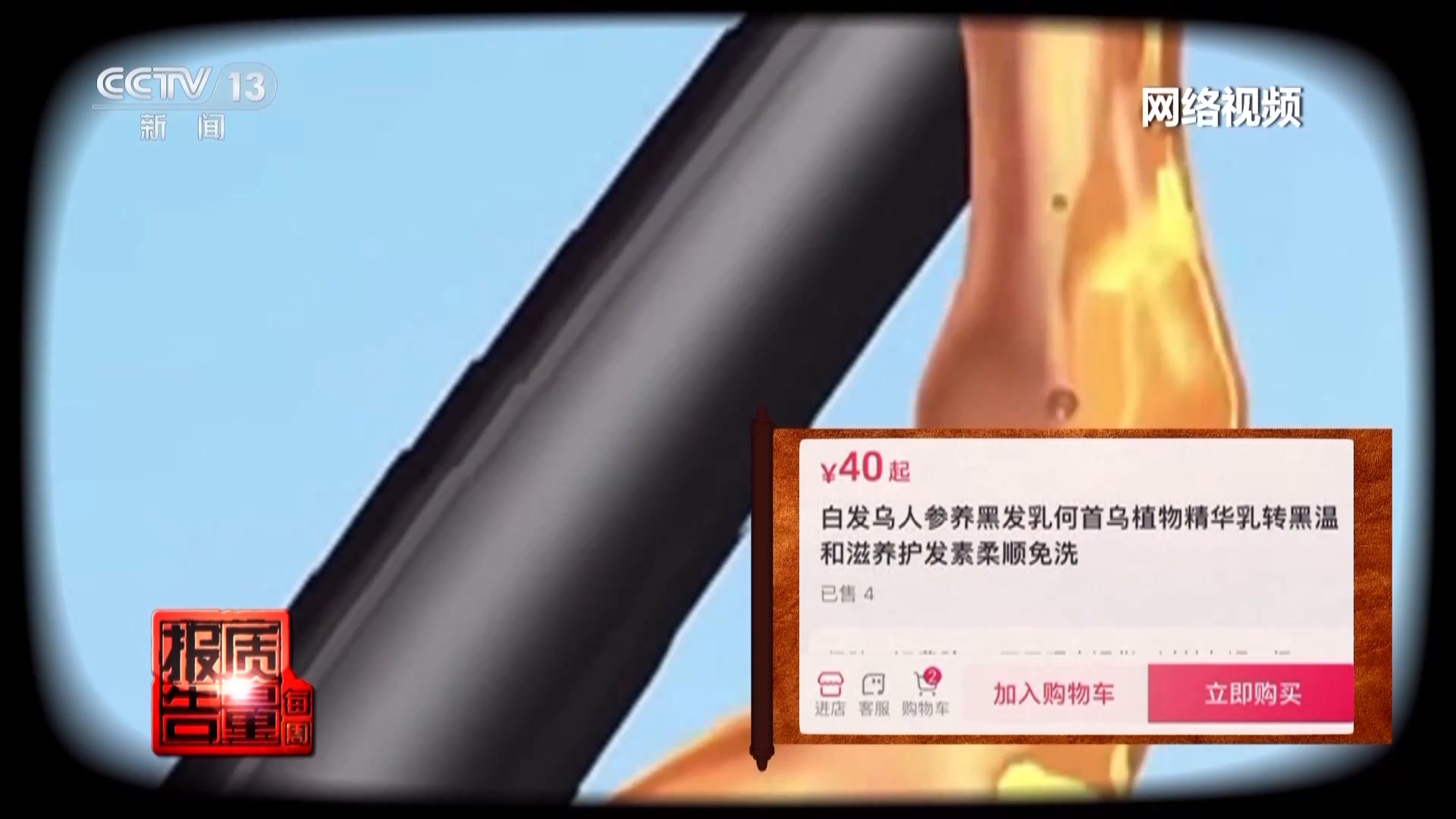 在某视频网站上,一款宣称能让头发自然“白转黑”的产品销售做着上述宣传。