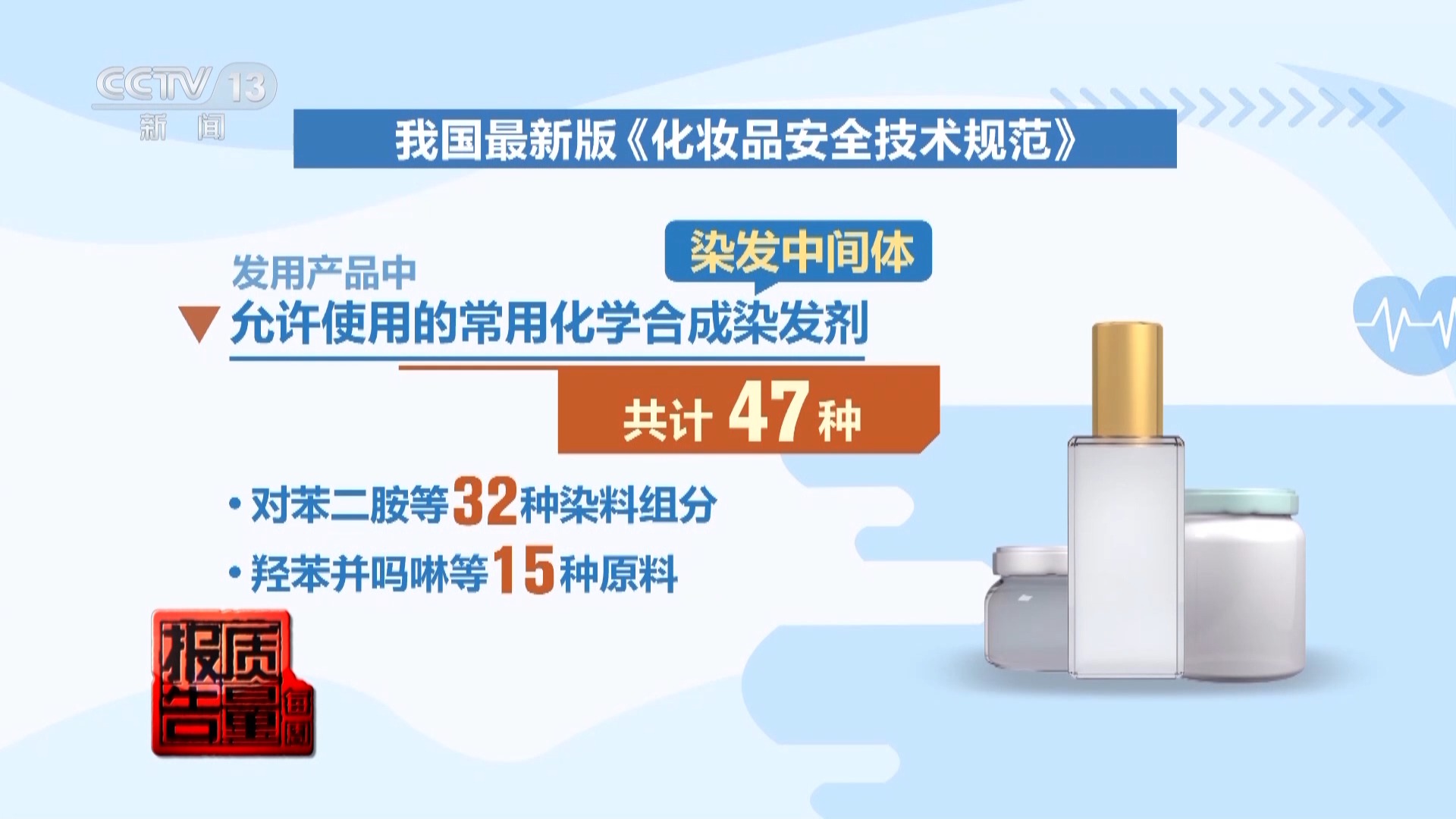 广州质量监督检测研究院化工检验部正高级工程师 谭建华:(允许使用的原料)是经过国内外大量的毒理学安全数据,以及经过专家进行评估,认为比较安全的,才列入了我国化妆品安全技术规范规定的准用染发剂目录当中。