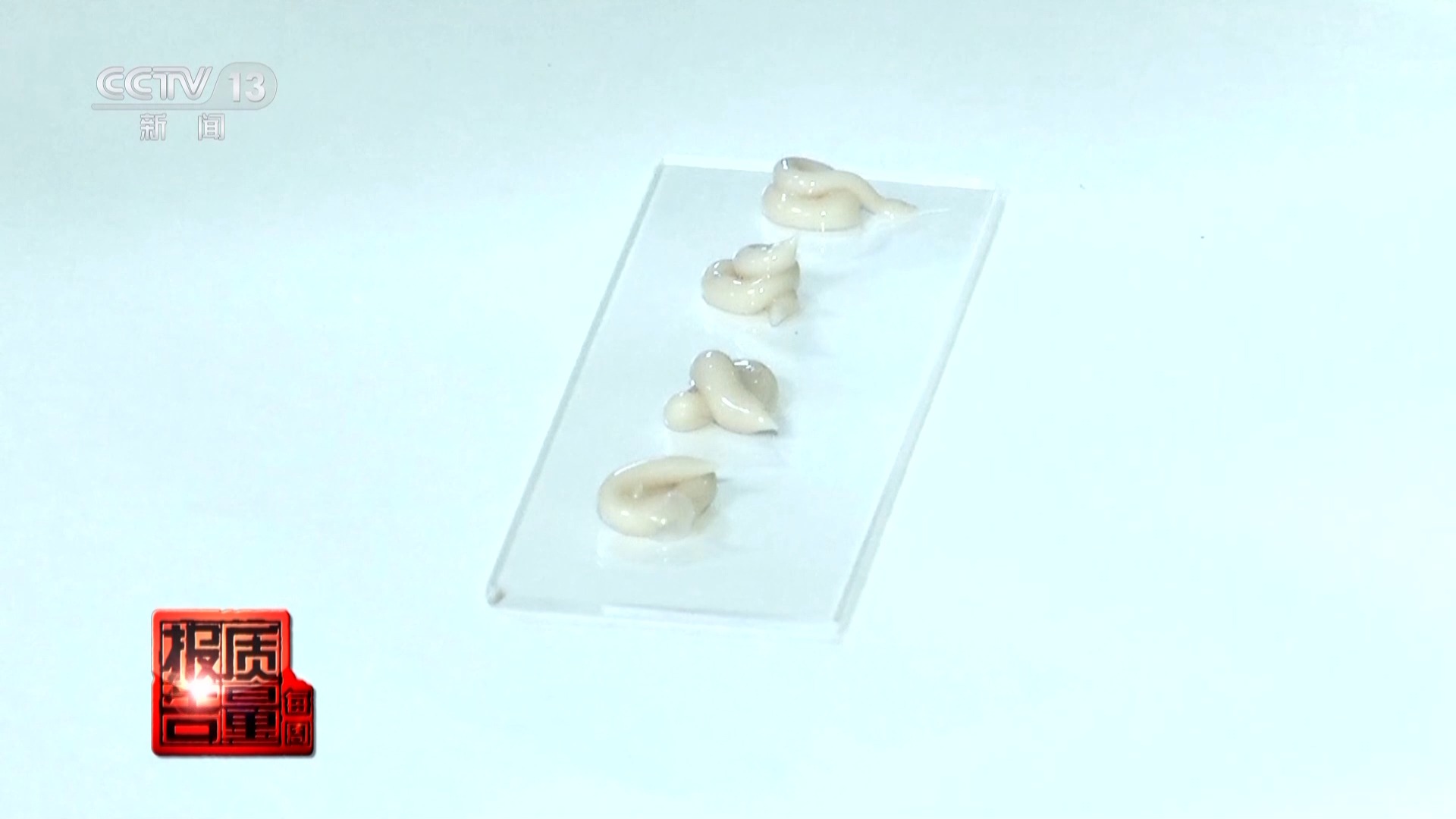 在检测机构记者看到,专业人员挤出样品里面的膏状物放置在专用玻璃片上,进行模拟阳光照射加速试验,6个小时后,这些膏状物颜色发生明显变化。
