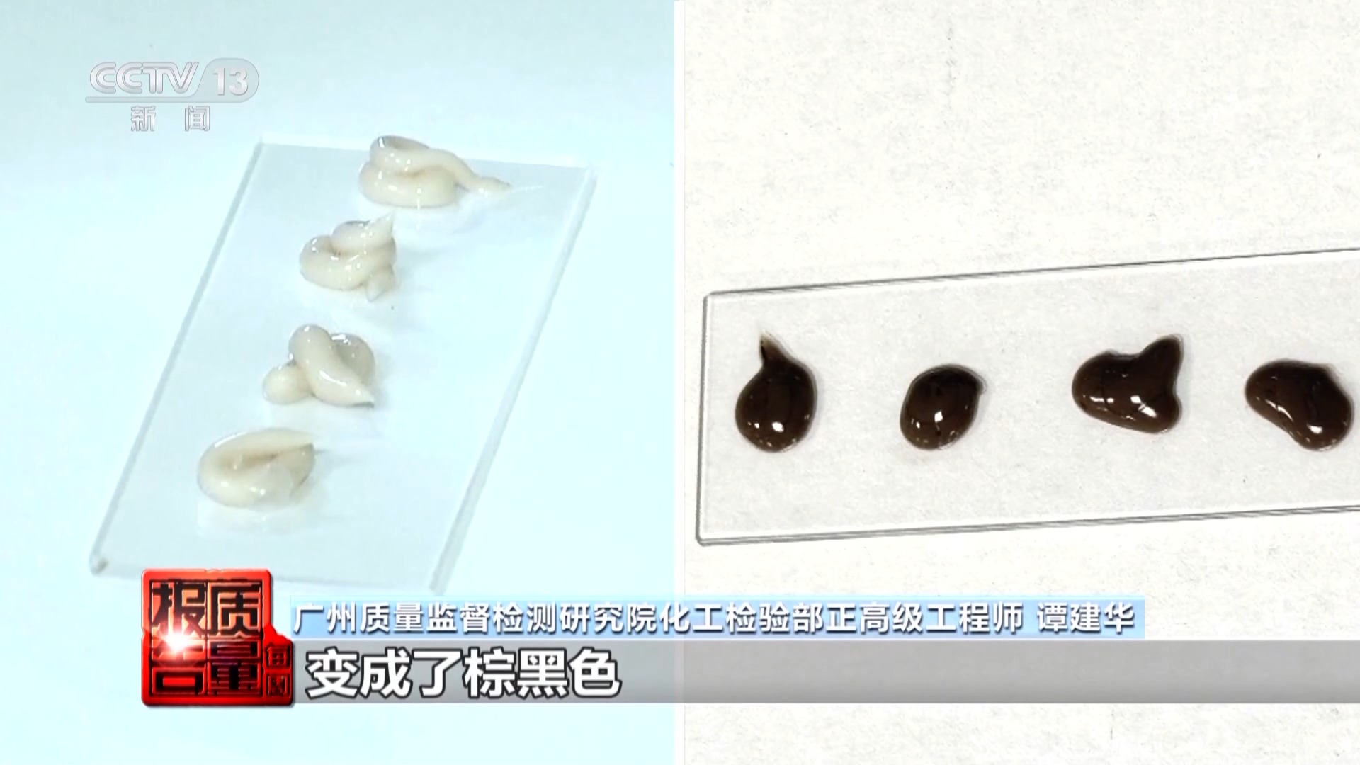 广州质量监督检测研究院化工检验部正高级工程师 谭建华:这说明这个产品它本身就含有一些可以变黑的一些物质。