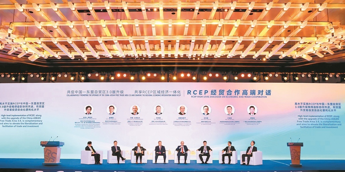 9月24日,RCEP经贸合作高端对话在广西南宁举行。活动以“共促中国—东盟自贸区3.0版升级 共享RCEP区域经济一体化”为主题,围绕进一步升级RCEP规则标准、拓展合作领域、扩大成员范围、RCEP实施与中国—东盟自贸区3.0版相得益彰相互促进等进行交流对话。