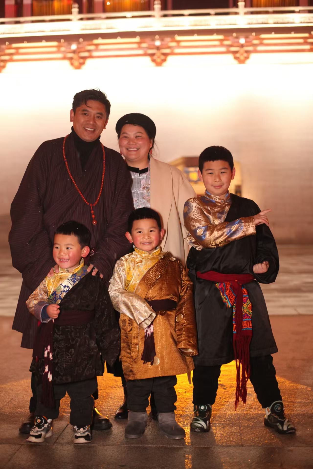 康定的节日氛围多元和谐。图为2024年元宵夜,洛让银登一家五口在旅行中拍摄的合影。资料图片