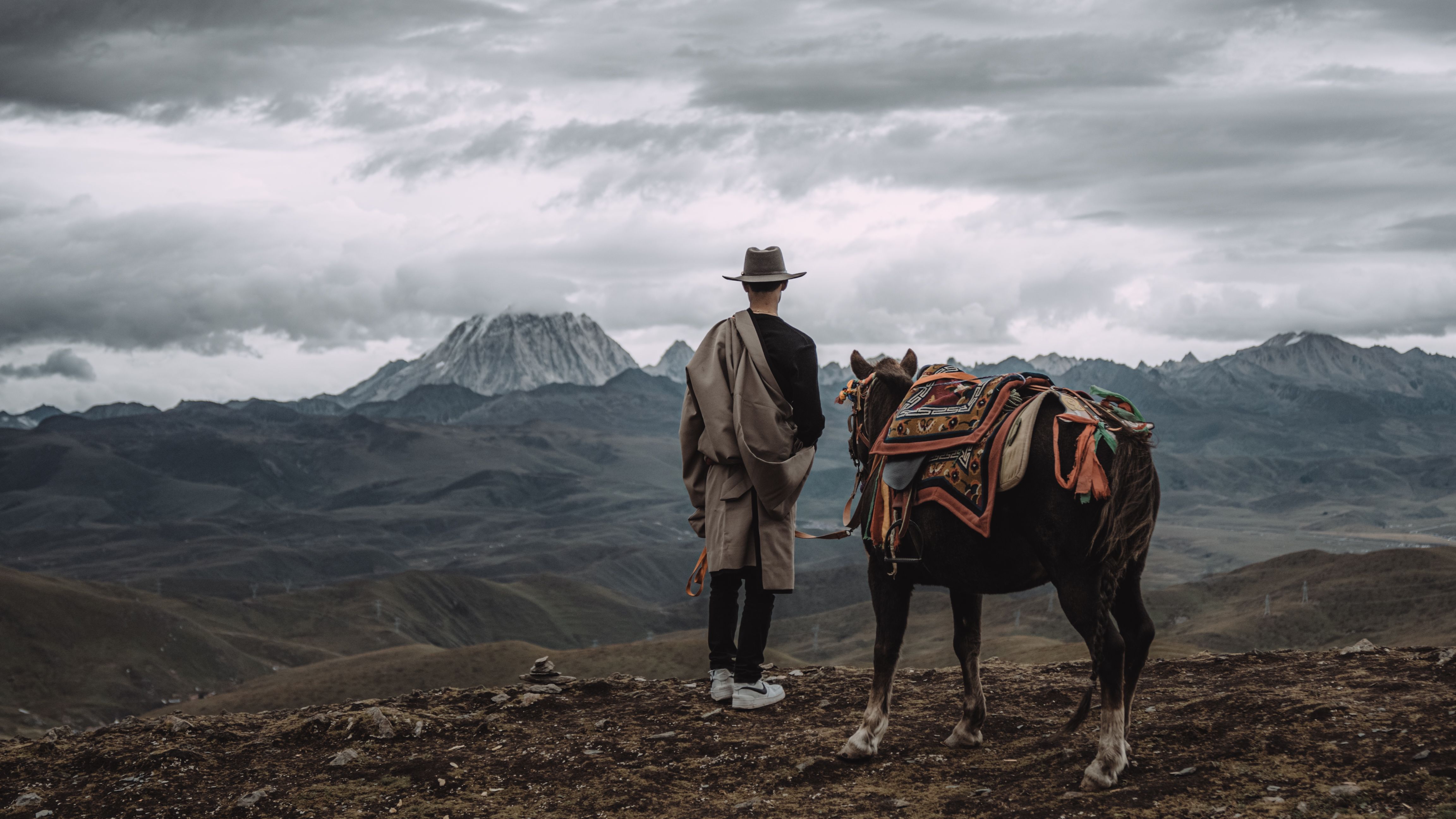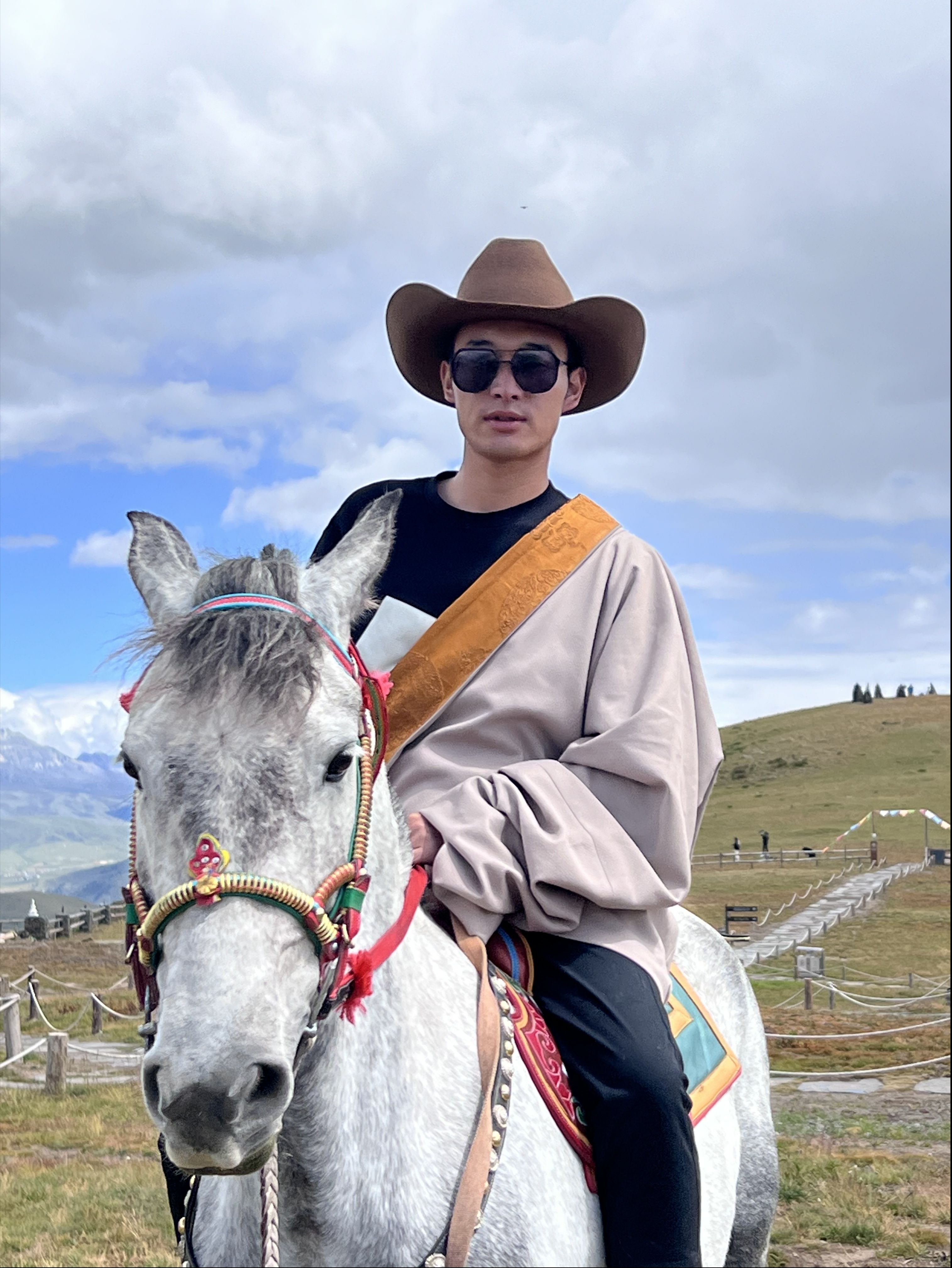 在康定八郎生都星空营地,村里的青年丹真德勒牵马注视世代生活的家园。八郎村提供