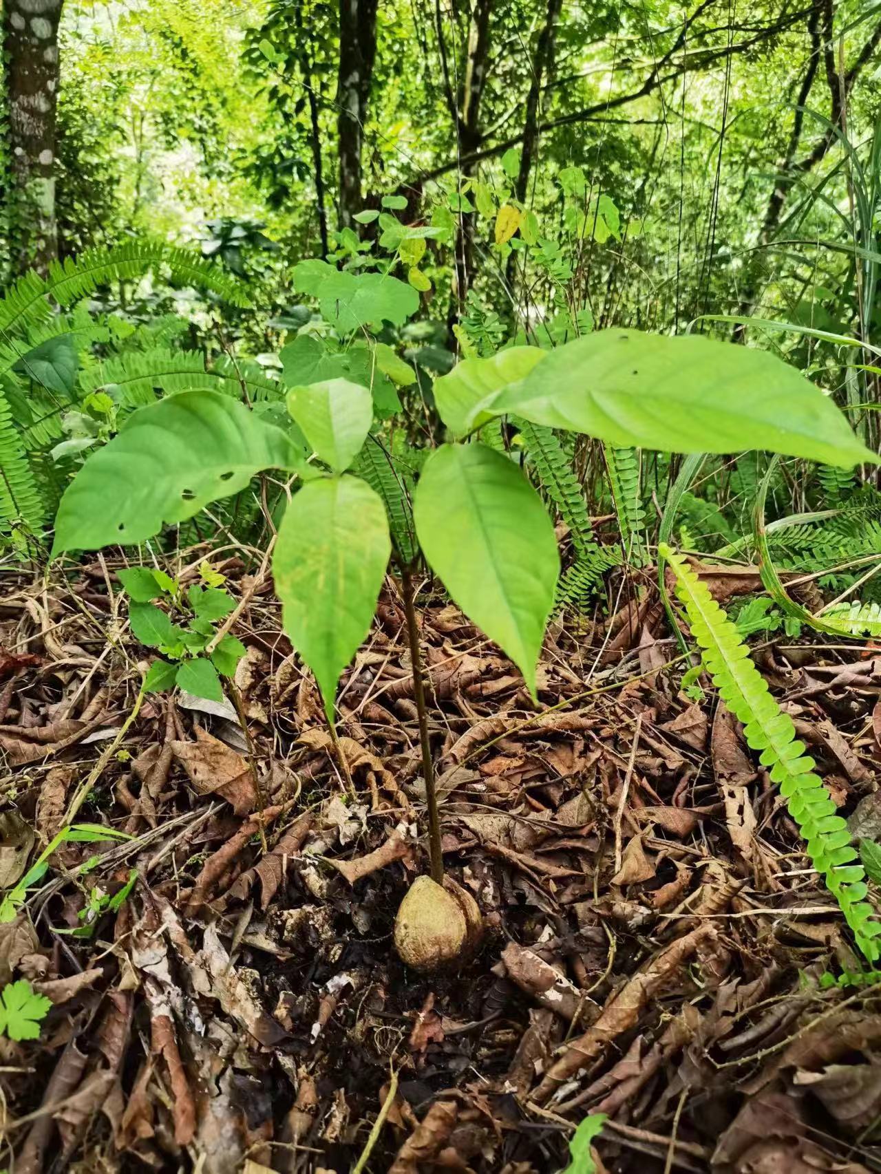 近日,云南文山麻栗坡老山省级自然保护区管护局工作人员在下金厂乡云岭村委会开展日常巡护时,在巡护过程中发现自然繁育新生喙核桃新苗40余株。