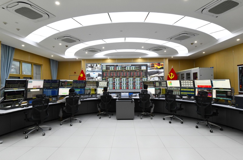 两河口水电站运行人员在中控室内分析水光互补发电运行数据。鞠聪摄