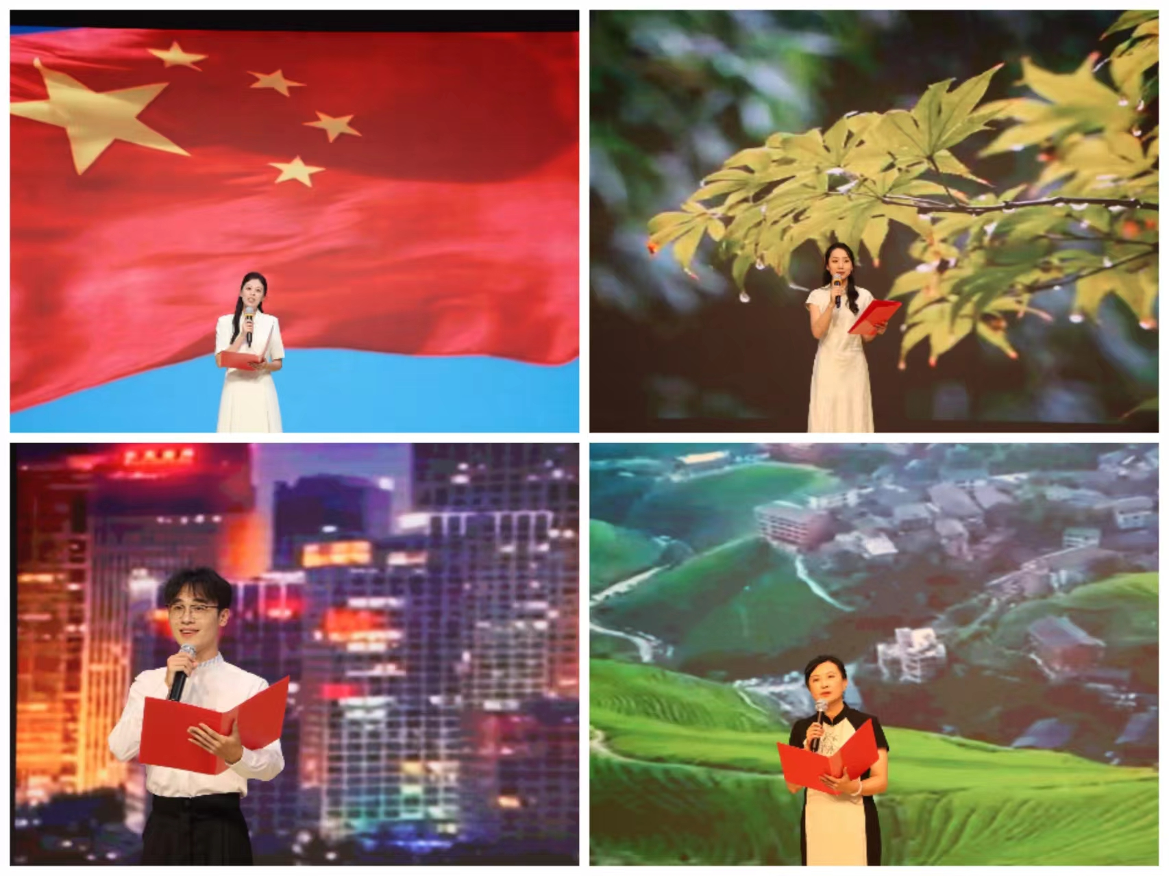此次颁奖晚会设置了获奖作品展演环节,来自师生和外国留学生的优秀作品逐一亮相。深情的朗诵展现了革命先辈的英勇事迹和崇高精神,细腻的笔触描绘了祖国的壮丽山河和悠久历史……每一件作品都凝聚了师生们的心血与智慧,赢得了观众的热烈掌声。
