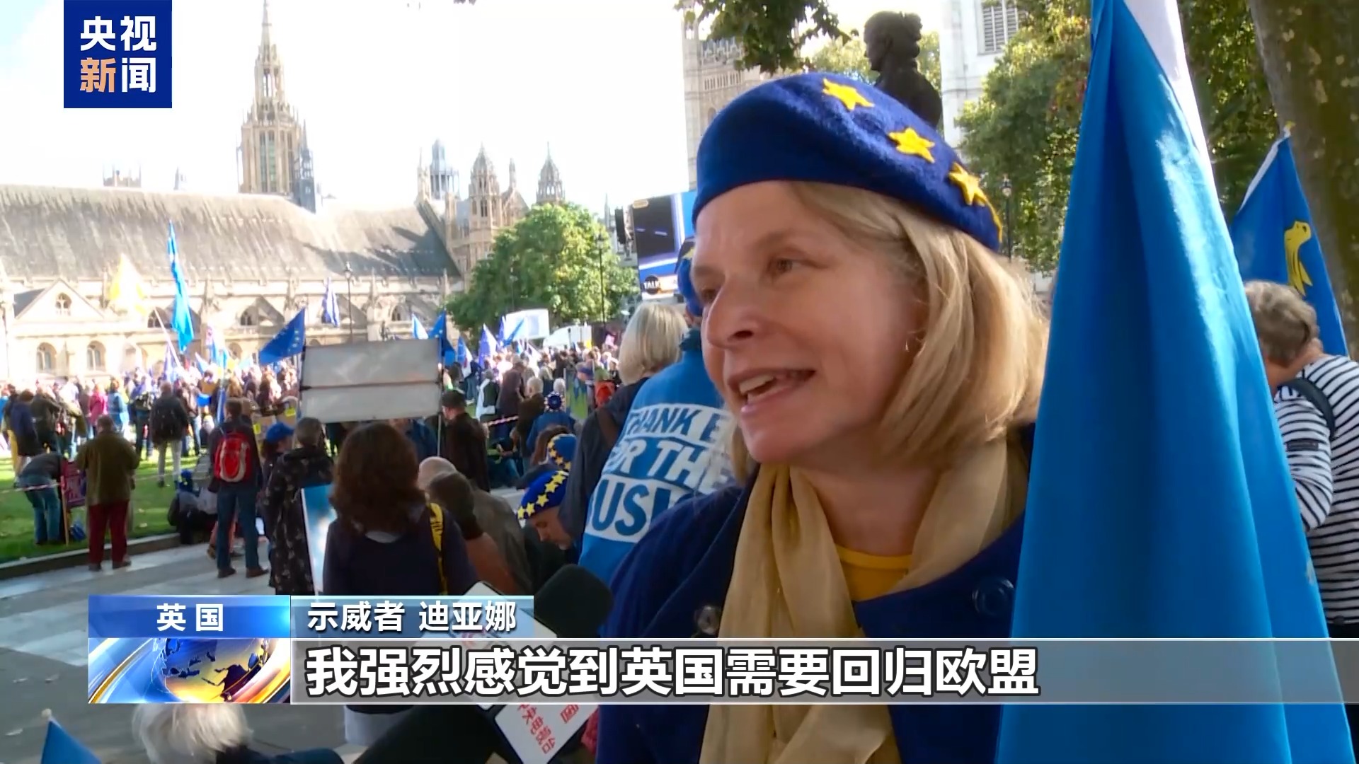 示威者 迪亚娜:我强烈感觉到英国需要回归欧盟,我觉得自己是欧洲人,我认为回归欧盟对我们的经济非常重要。