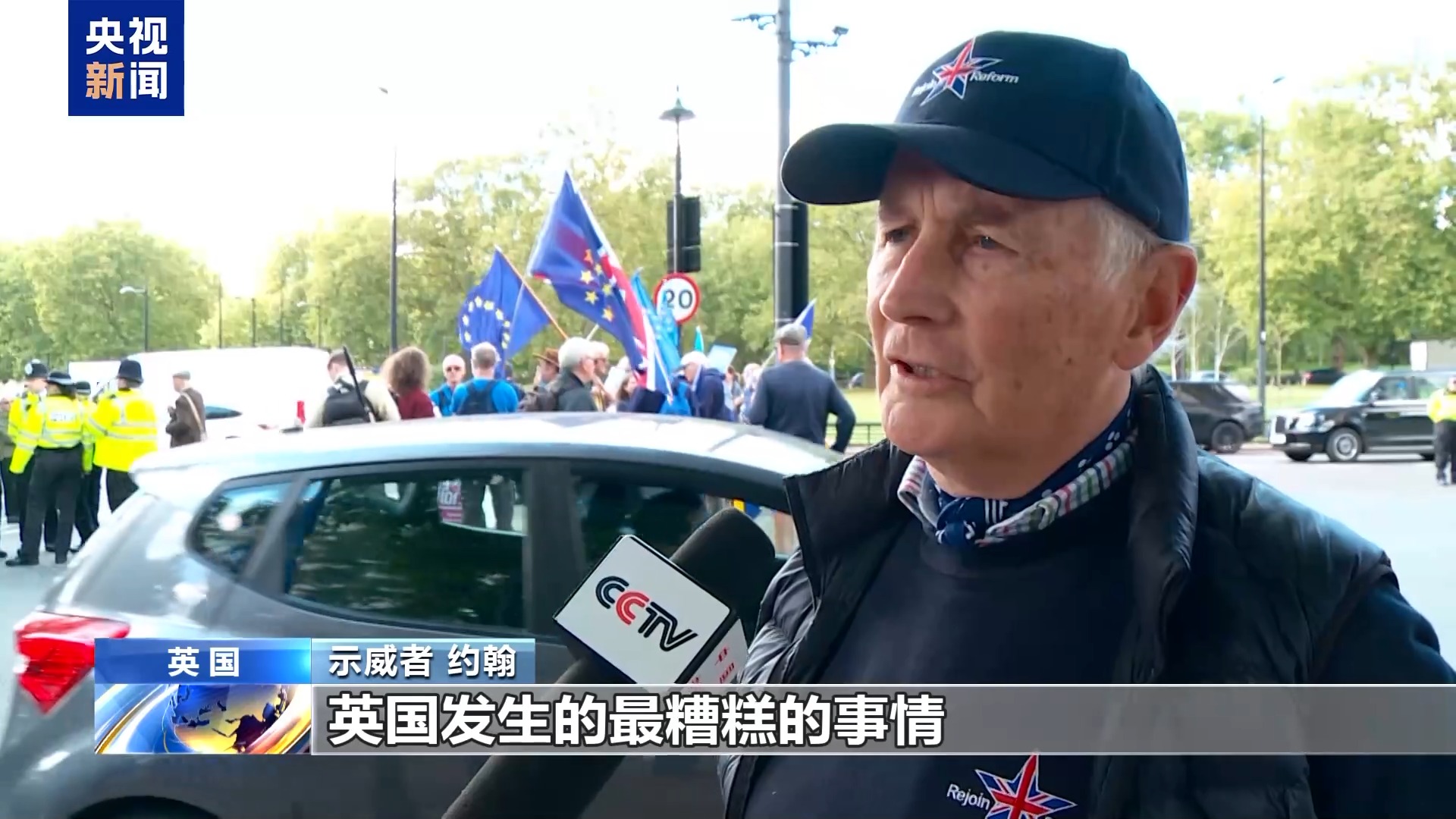 示威者 约翰:“脱欧”是几个世纪以来英国发生的最糟糕的事情。“脱欧”让人均每年损失1000英镑,成百上千家企业因为“脱欧”破产,超市货架空空如也,药品短缺。每次我们去机场,都要大排长龙,我们必须改变这种状况。如果不改变,英国将继续处于像当下这样的螺旋式衰退中。