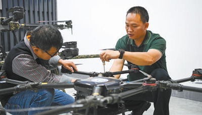 广西壮族自治区贵港市港北区通过搭建创业孵化园区等举措,支持群众创业就业。图为创业孵化园区内,一个无人机服务创业团队在维修无人机。 |