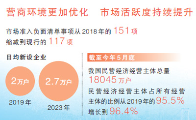 企业是创新的主体,是推动创新创造的生力军。从推动国有资本和国有企业做强做优做大、促进民营经济发展壮大,到构建全国统一大市场、完善市场经济基础制度,改革持续深化,企业茁壮成长。截至今年5月底,我国民营经济经营主体总量达18045万户,占所有经营主体的比例为96.4%。