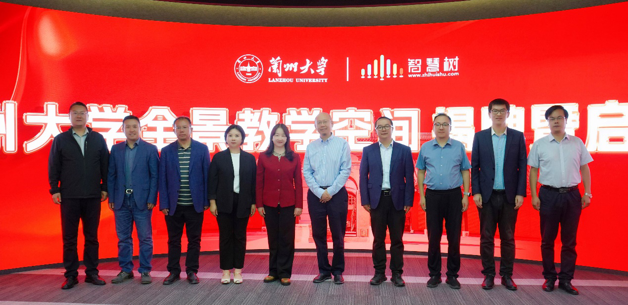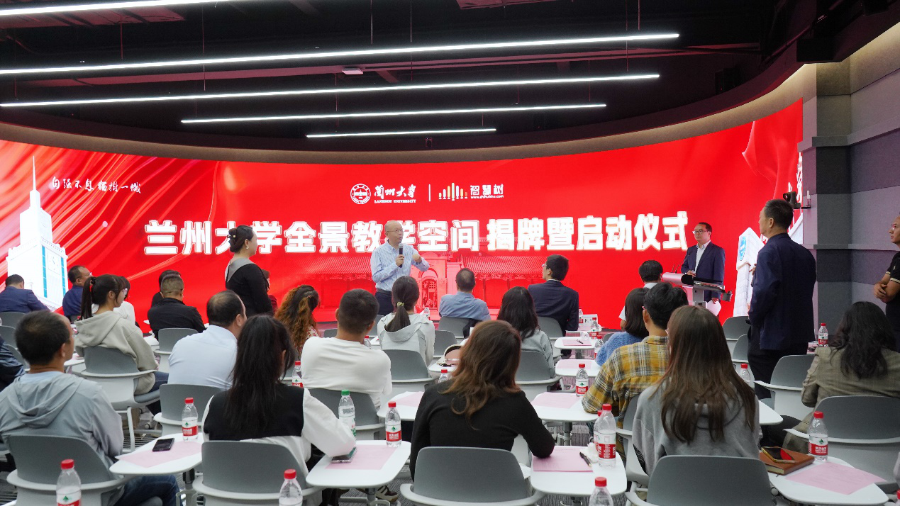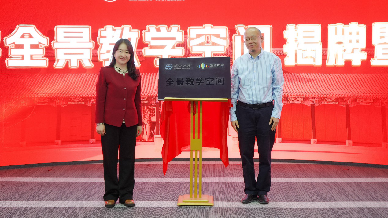 会上,勾晓华和王健共同为兰州大学全景教学空间揭牌,并与相关职能部门和学院教师代表共同启动了“全景教学空间”。