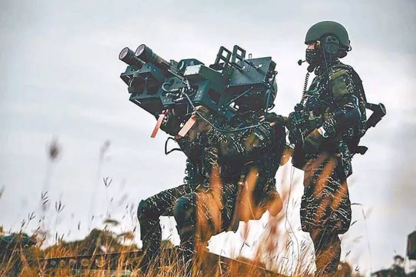 台海军陆战队肩扛“毒刺”导弹发射器准备射击画面。图源:台媒