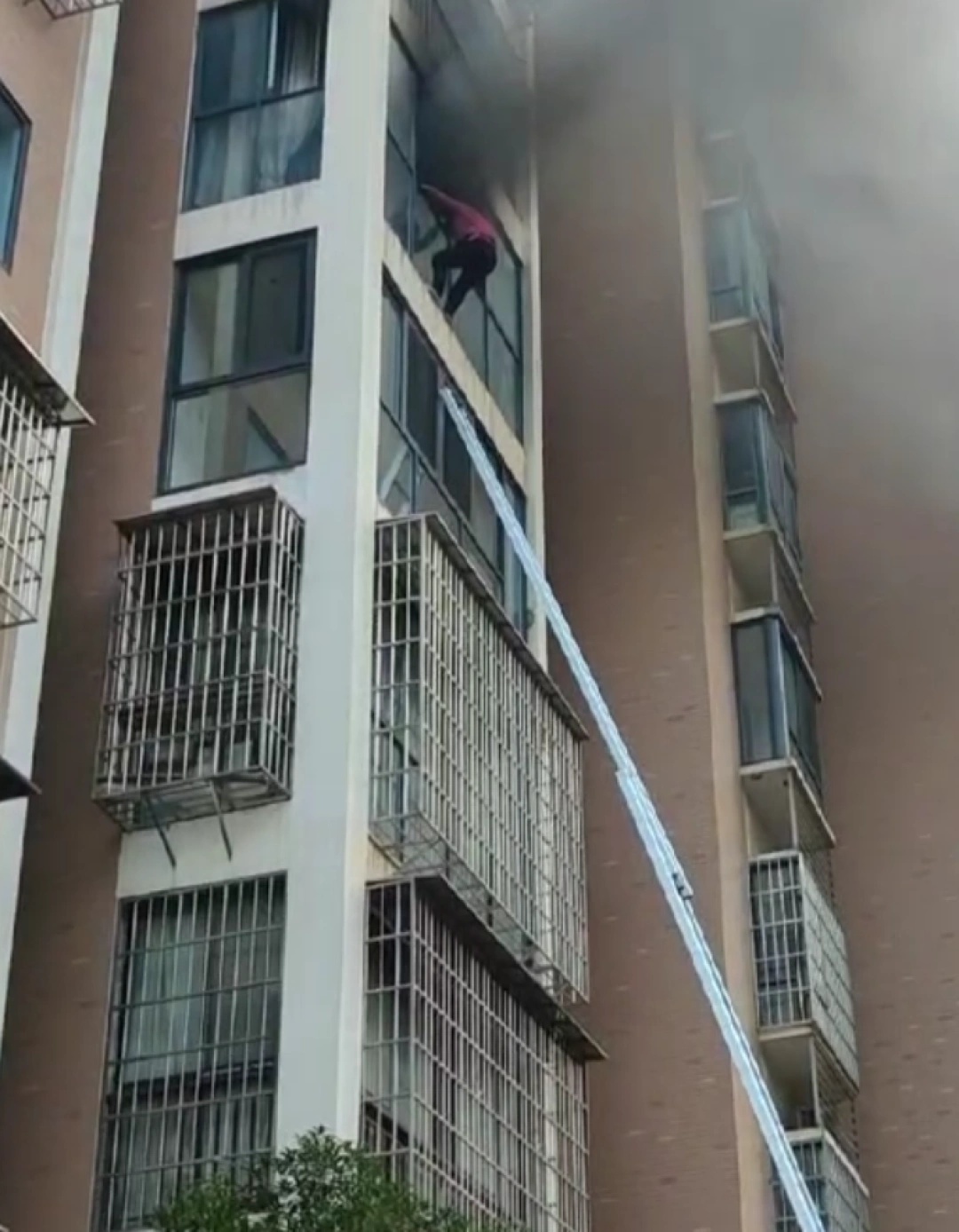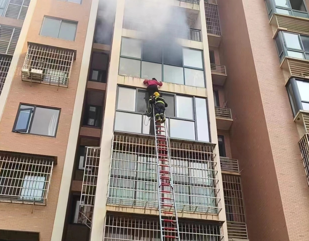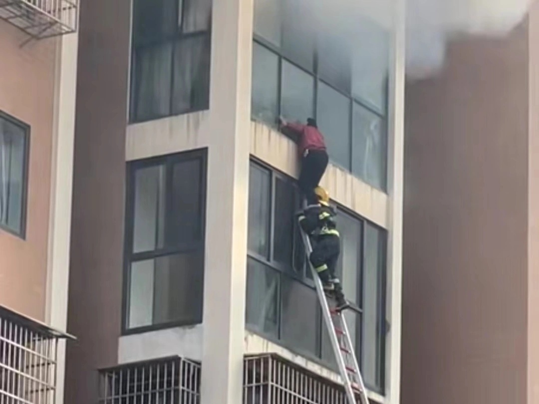 消防员以身作梯补上火场逃生最后1米