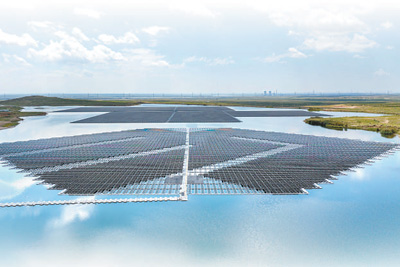 宁夏灵武市加快发展绿色能源产业,图为位于灵武市的宁东电厂漂浮分布式光伏发电项目。新华社记者 杨植森摄