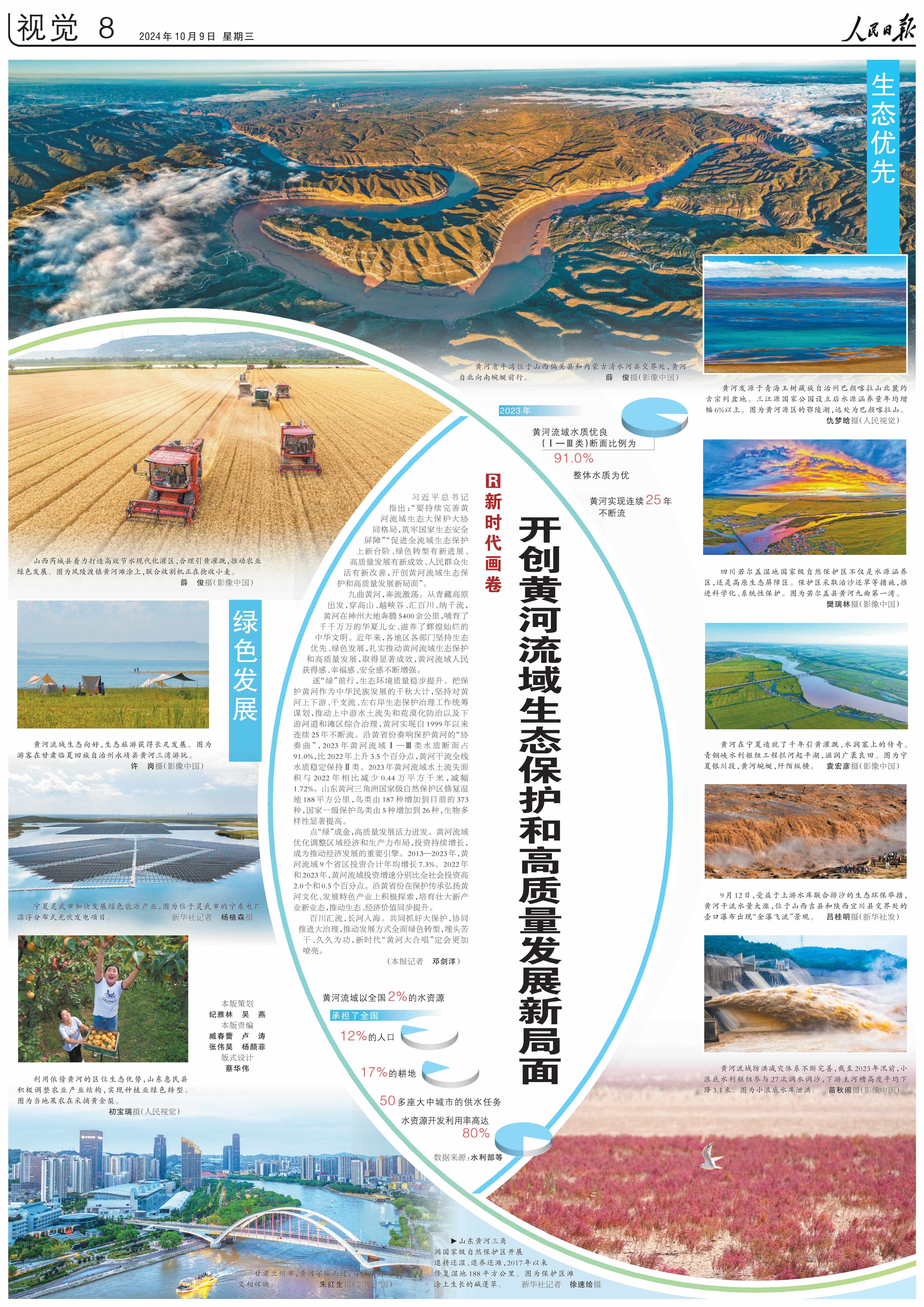 九曲黄河,奔流激荡。从青藏高原出发,穿高山、越峡谷、汇百川、纳千流,黄河在神州大地奔腾5400余公里,哺育了千千万万的华夏儿女、滋养了辉煌灿烂的中华文明。近年来,各地区各部门坚持生态优先、绿色发展,扎实推动黄河流域生态保护和高质量发展,取得显著成效,黄河流域人民获得感、幸福感、安全感不断增强。