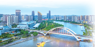 甘肃兰州市,黄河穿城而过,与繁华的城市交相辉映。朱红生摄(影像中国)