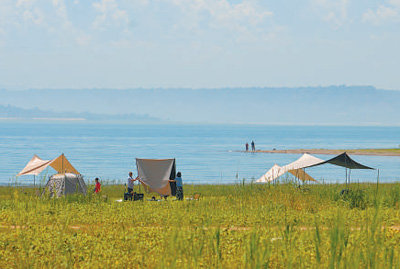 黄河流域生态向好,生态旅游获得长足发展。图为游客在甘肃临夏回族自治州永靖县黄河三湾游玩。许 岗摄(影像中国)