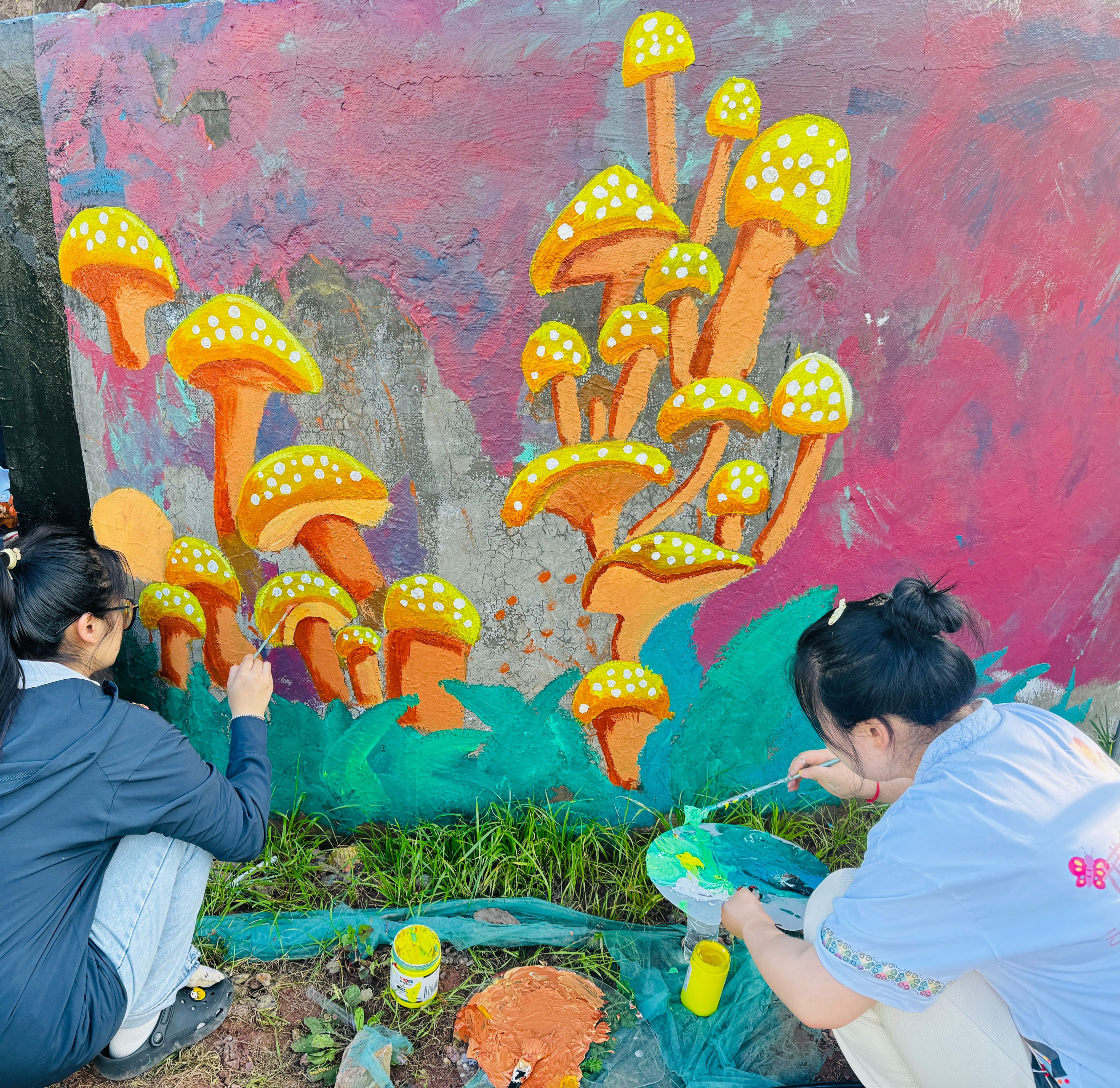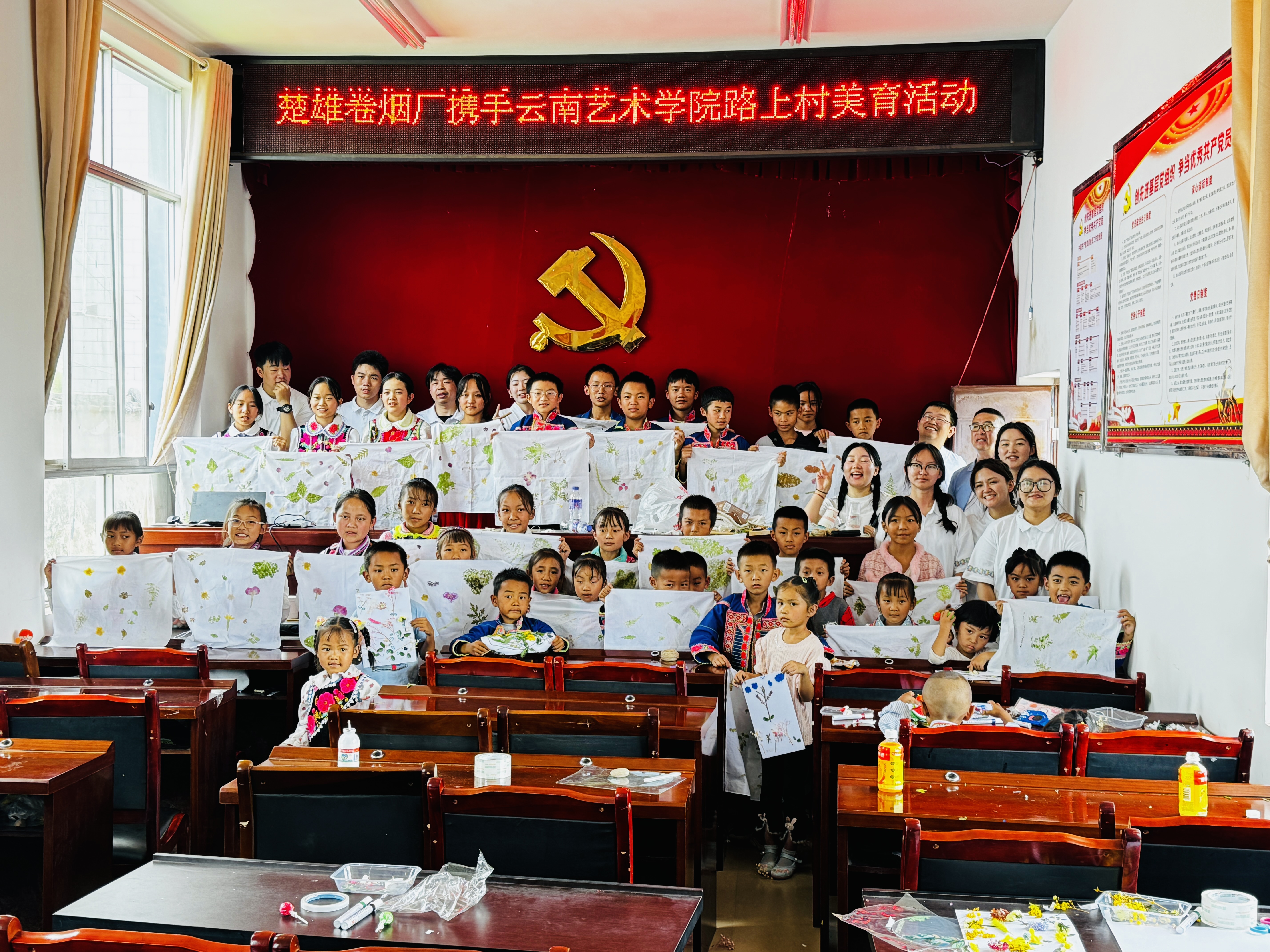 光秃秃的泥巴墙上绘出载歌载舞的彝家儿女,乡村的路边垃圾池上“变”出色彩鲜艳的篝火、蘑菇,随手摘来的野花野草装点着可爱面具……近期,云南中烟红塔集团楚雄卷烟厂驻村工作队与云南艺术学院师生共同组织为期7天的“博想学团”公益美育教育活动在楚雄市东华镇路上村举办。活动深入乡村、走进学校,寓教于乐的教学方式深受孩子们喜爱,不仅激发了孩子们对美术的兴趣和热情,也在他们幼小的心中播撒下了“美”的种子。