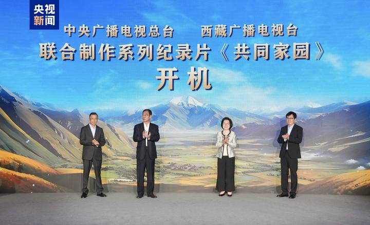 △西藏自治区党委宣传部副部长、西藏广播电视台党组书记张晓峰,中央广播电视总台影视剧纪录片中心副主任梁红,西藏广播电视台编委、《共同家园》总制片人向伟,总台援藏干部、西藏卫视总监、西藏广播影视制作中心主任吴晓斌共同为节目开机