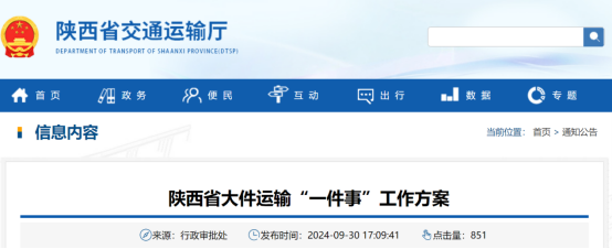 日前,记者从陕西省交通运输厅获悉,为进一步提升政务服务便利化水平,推动大件运输“一件事”高效办理,该厅结合陕西省实际,制定了《陕西省大件运输“一件事”工作方案》(以下简称《方案》)。