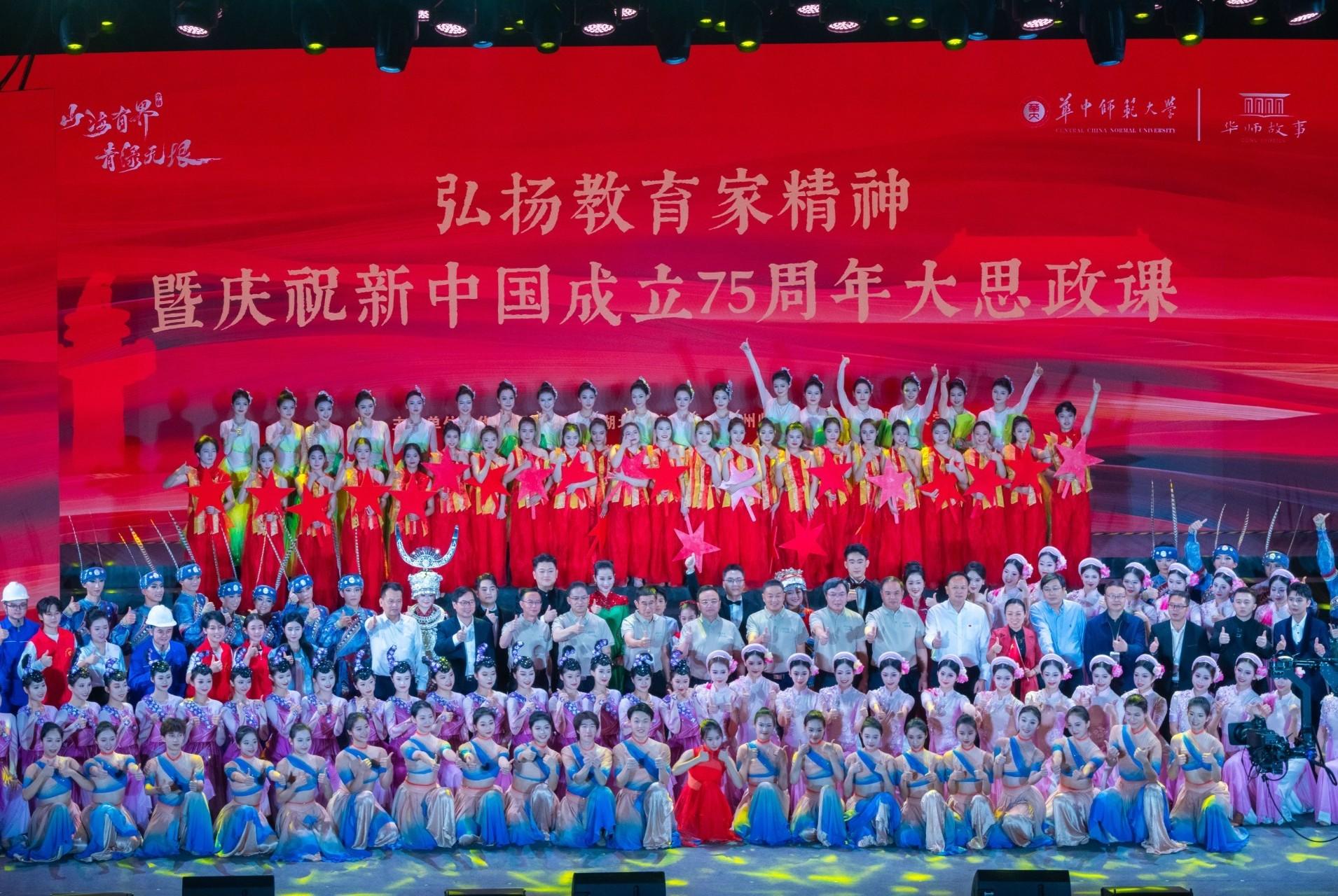 “从千湖之省,到万瀑之乡,攀援高山,跋涉深涧;从荆楚大地,到八桂田园,踏步荆棘,蒙犯霜露……”10月10日,“山海有界,青绿无垠——弘扬教育家精神暨庆祝新中国成立75周年”大思政课在华中师范大学露天电影场举行。来自教育部师范教育协同提质计划华中师范大学组团高校的3000余名师生现场同上一堂沉浸式大思政课,共立“教育强国,师范有为”的铮铮誓言。