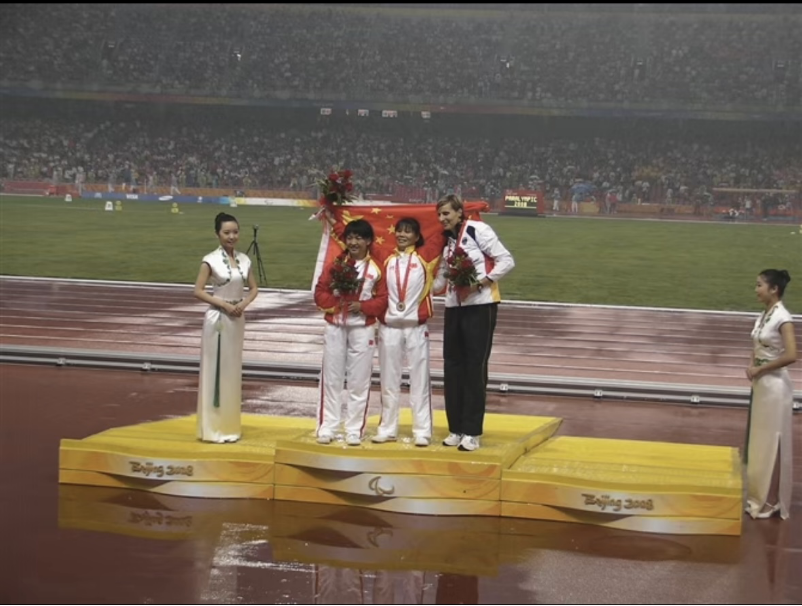钟永渊在2008年北京残奥会女子铅球F42-46决赛中获得银牌。