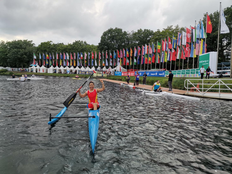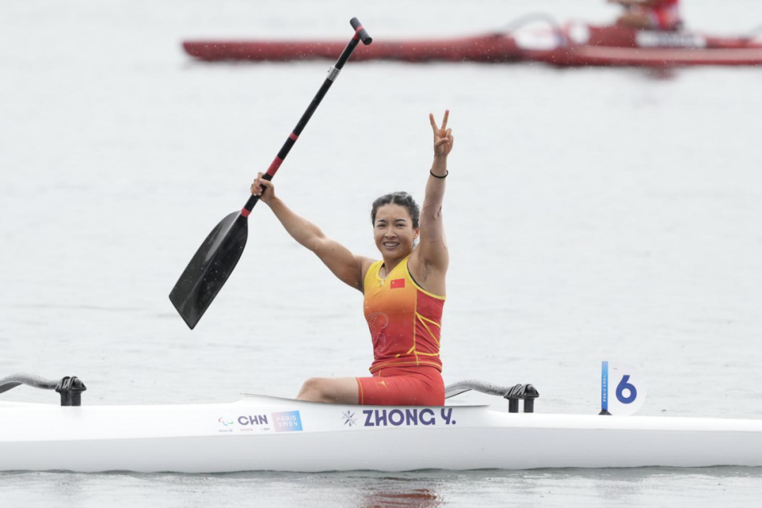 钟永渊在2024巴黎残奥会女子200米VL3单人划艇决赛中勇夺铜牌。