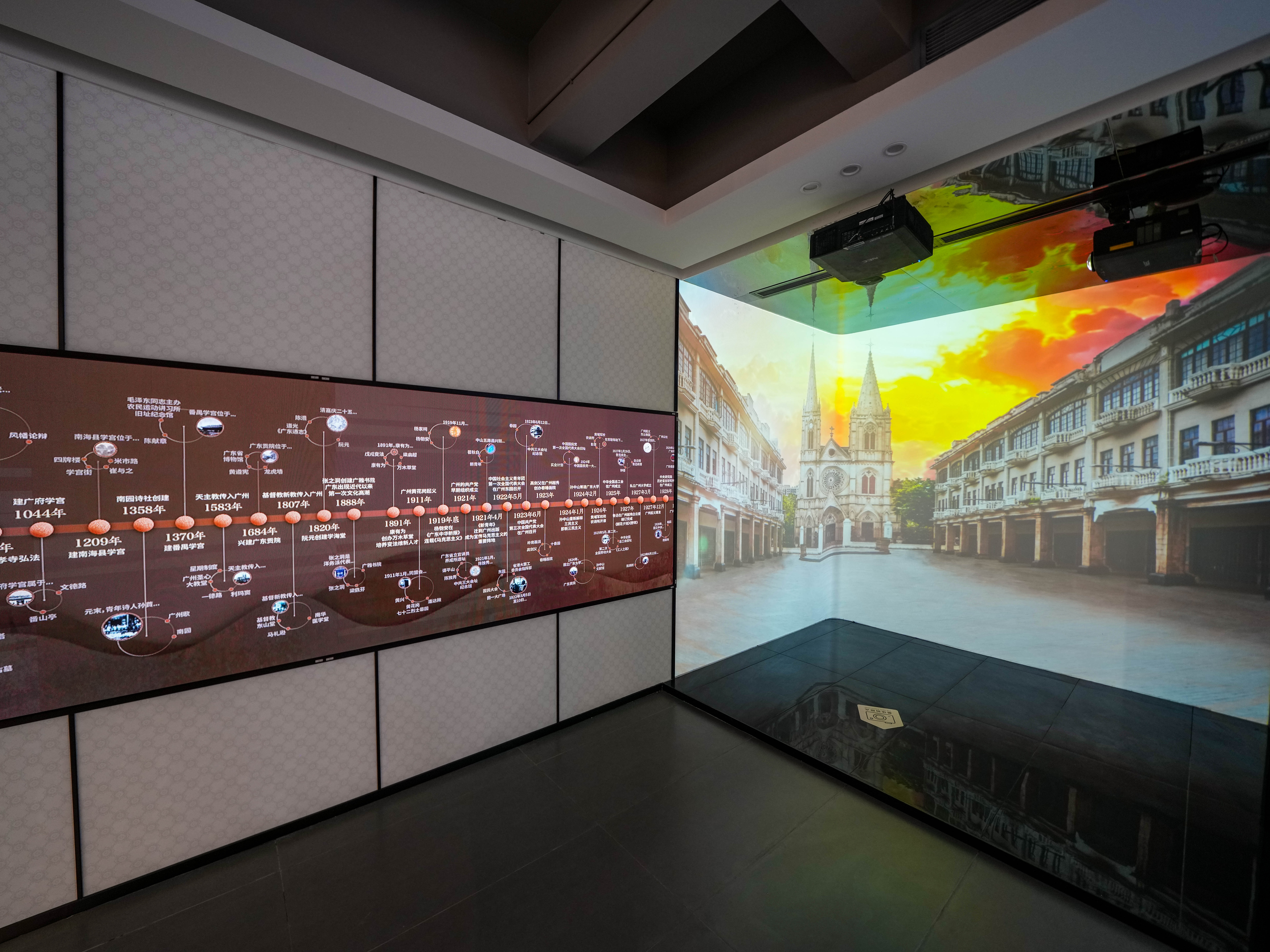 除了静态的景观以外,五仙观文化空间还引入了数字科技应用,打造多种互动体验项目,近期,推出“仙古奇谈·五羊新韵——沉浸式互动剧”“广府梦华录——越秀海丝幻镜VR大空间”,将演绎五羊传说、海丝繁华盛景的舞台延展至观众身边。