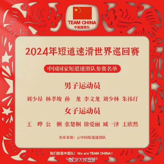 中国短道速滑队世巡赛参赛名单↓↓