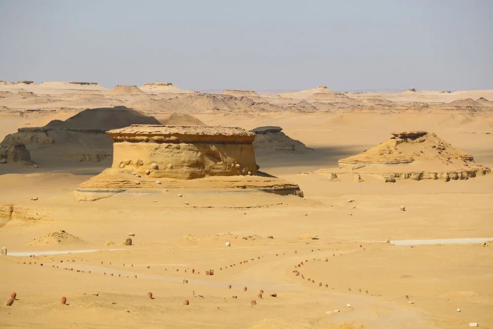 图为2022年10月29日在埃及法尤姆省拍摄的风蚀地貌。(新华社记者隋先凯摄)