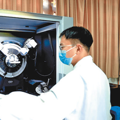 云南民族大学钛基金属及复合材料技术研究中心,科研人员在进行焊接材料性能测试。 |