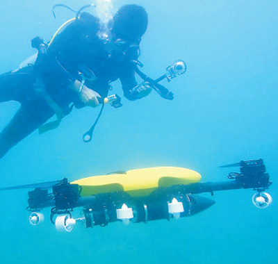 上海交通大学海洋学院博士生吕晨昕在进行哪吒—Ⅳ型海空跨域航行器海试。 |